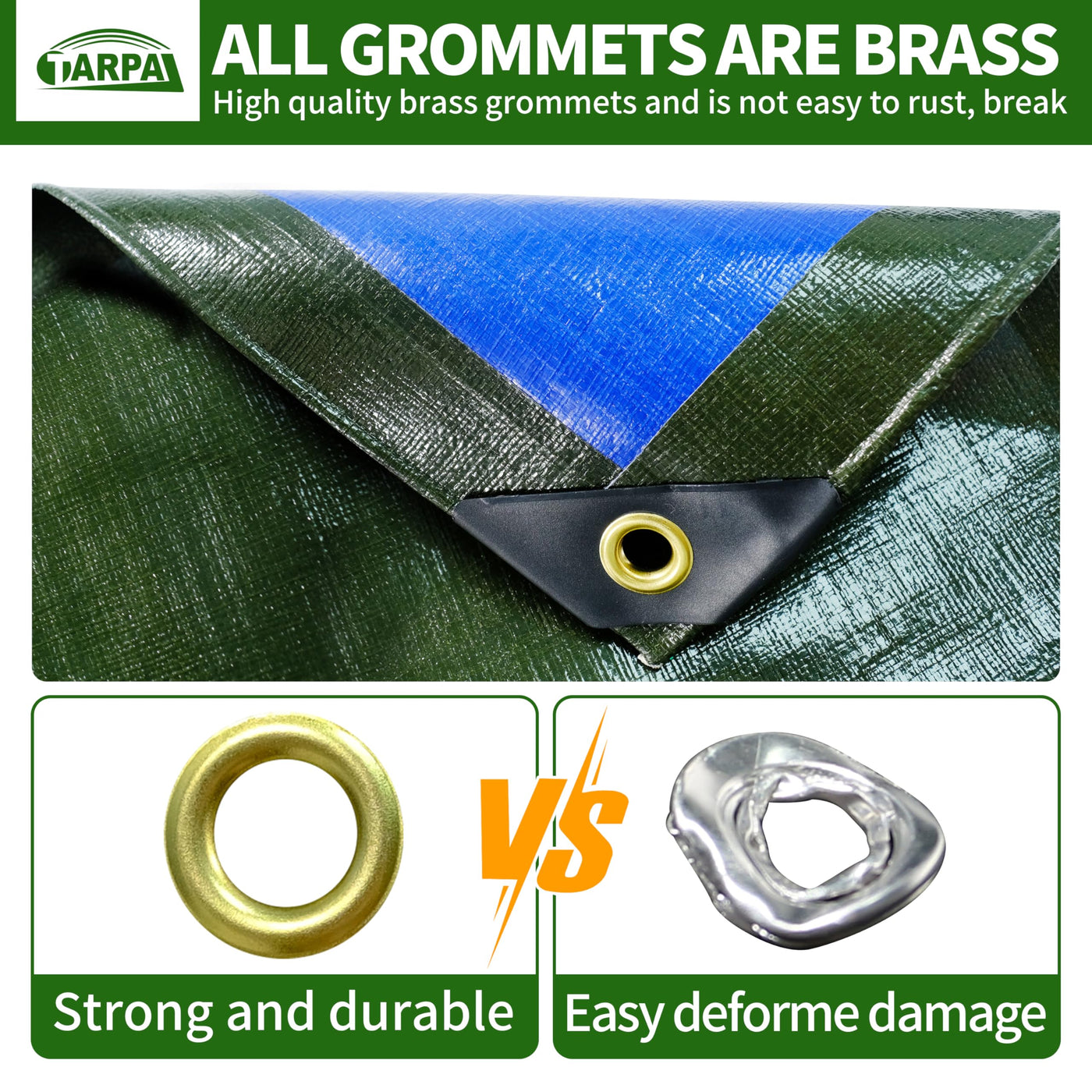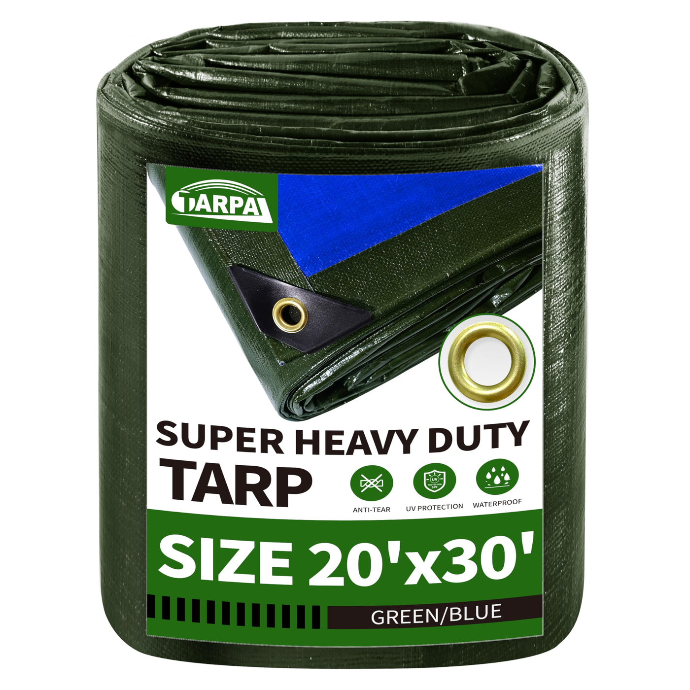 Tarpal Tarps Waterproof 20X30 Green Heavy Duty Tarp 16Mil Small Tarp With Brass Grommets Every 17.7' Tear&Uv Protection Cover For Firewood,Roof,Pool