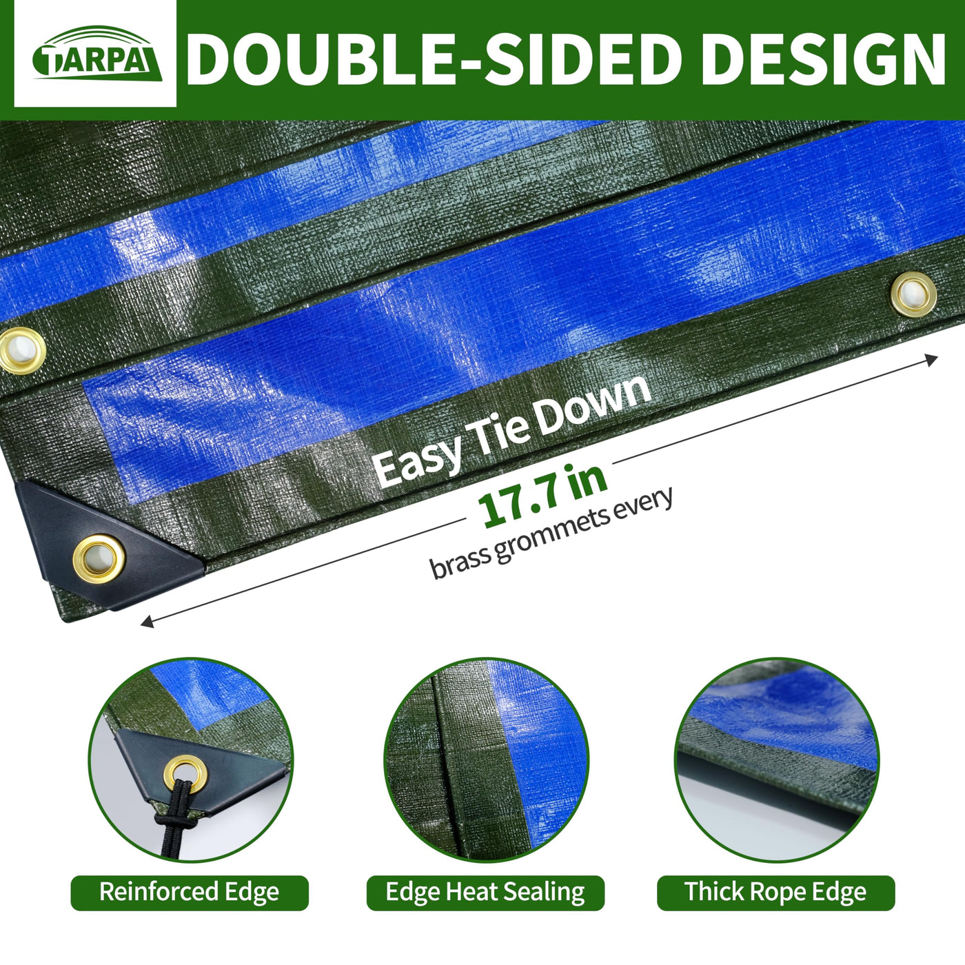 Q: How thick is the TARPAL waterproof tarp, and what material is it made from?A: The TARPAL tarp is 16 mil thick and is made from tightly woven polyethylene (PE) fibers, providing excellent durability and waterproof performance.