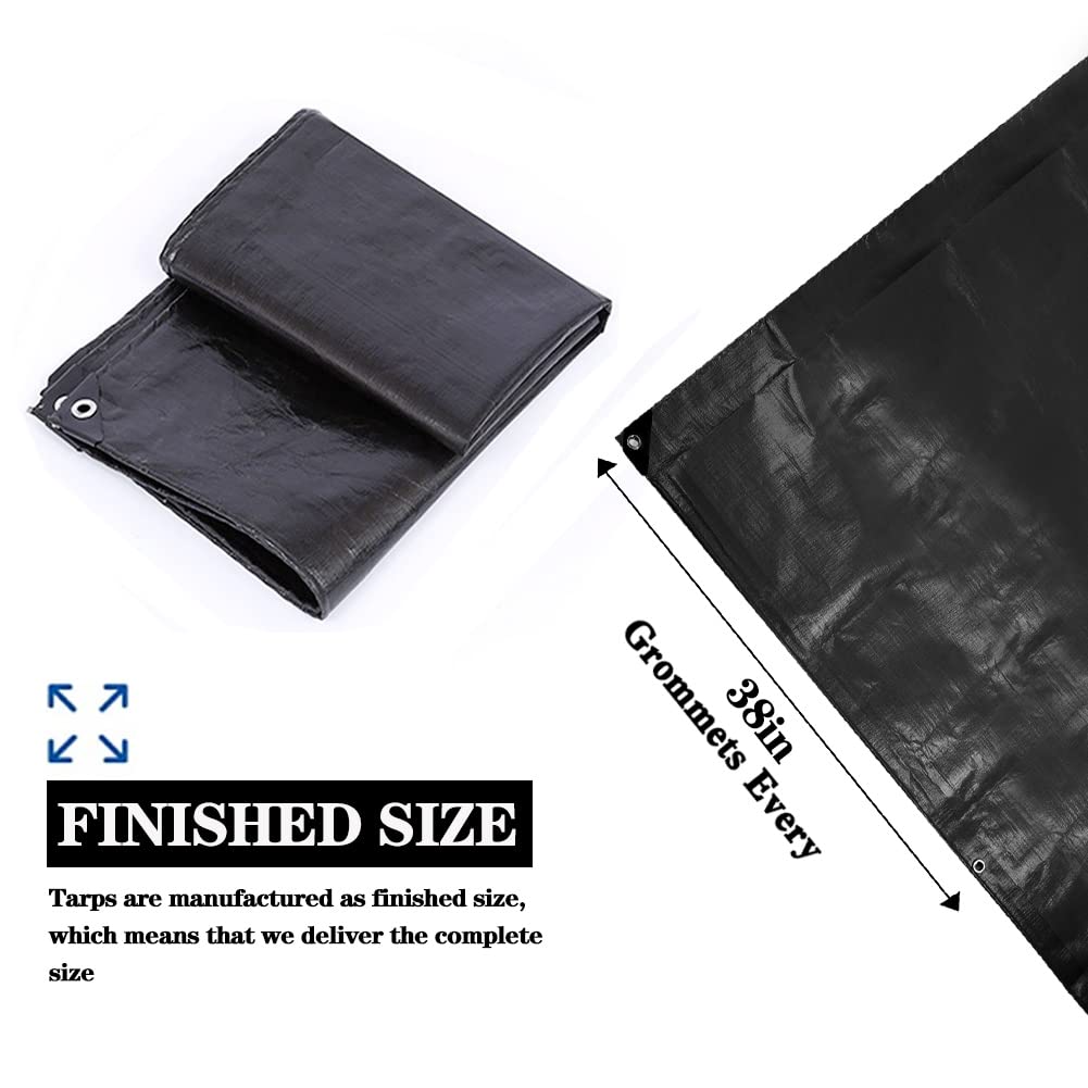 Tarps Heavy Duty Waterproof 12X16Ft,Black Plastic Tarps Multipurpose Large Outdoor Tarp Cover 10Mil Thick Poly Tarpaulin For Emergency Rain Or Sun, Roof, Patio Furniture, Firewood, Canopy