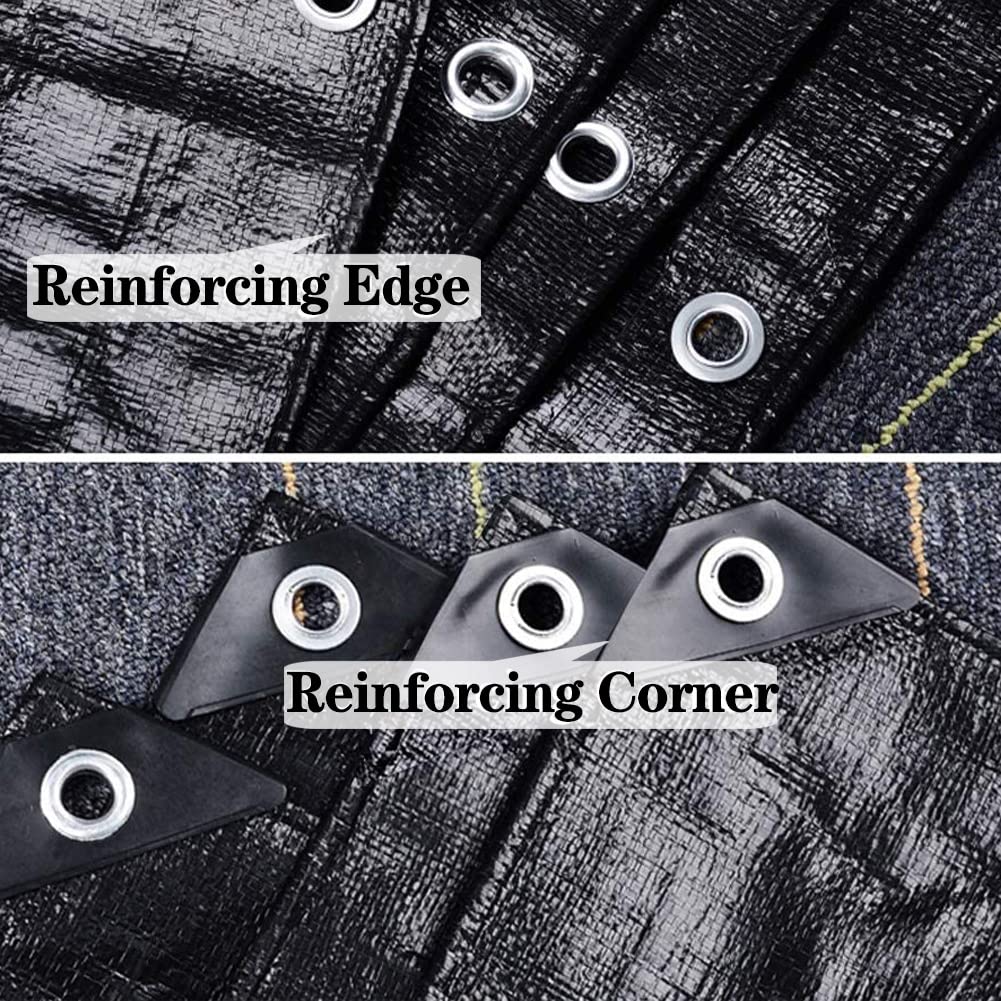 Q: How do I secure the tarp in place?A: The tarp features reinforced metal grommets on the edges, allowing for easy tying down with ropes or bungee cords. This ensures that the tarp stays securely in place, even in windy conditions.