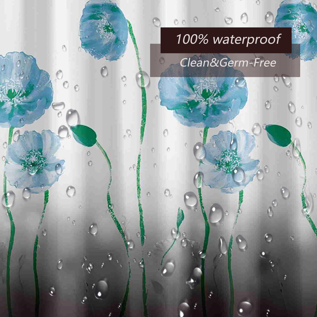 Q: Is the TIKABC Blue Rose Shower Curtain Liner waterproof?A: Yes, the TIKABC Blue Rose Shower Curtain Liner is made from high-quality PEVA material, which is waterproof and helps keep your bathroom dry.