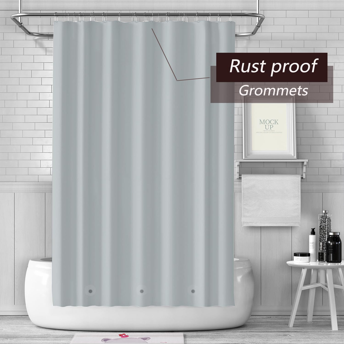 Q: Is the TIKABC Grey Shower Curtain Liner waterproof?A: Yes, the TIKABC Grey Shower Curtain Liner is made from high-quality PEVA material, which is waterproof and designed to keep your bathroom dry.