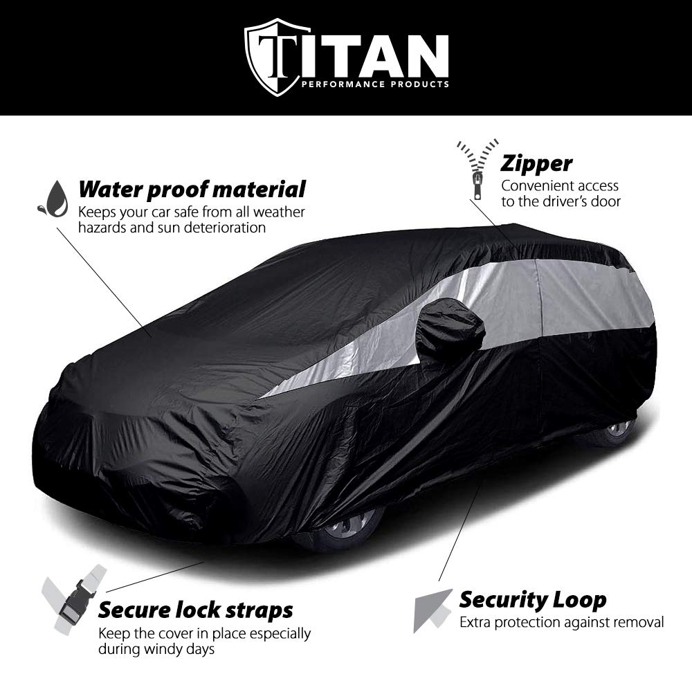 Titan Jet Black Poly 210T Car Cover For Hatchbacks 165-181''. Waterproof, Uv Protection, Scratch Resistant, Driver-Side Zippered