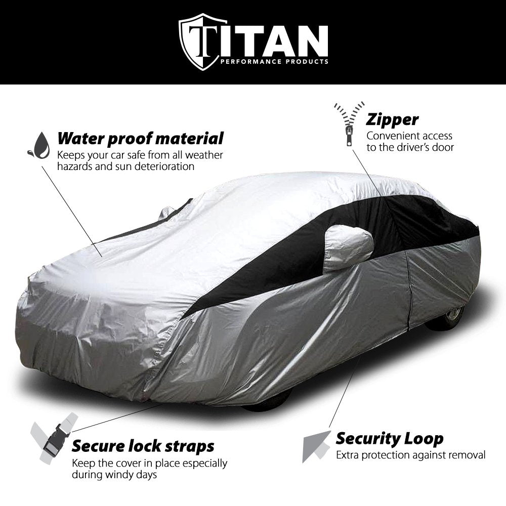 Titan Lightweight Poly 210T Car Cover For Sedans 186-202''. Waterproof, Uv Protection, Scratch Resistant, Driver-Side Zippered O