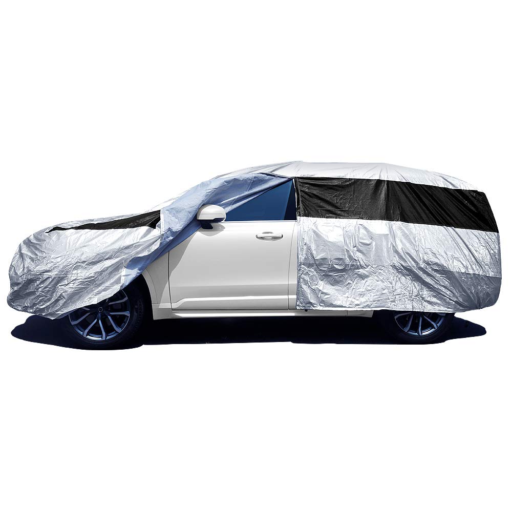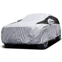 THE PREMIUM MULTI-LAYER PEVA MID-SIZE SUV CAR COVER Everything is fine with us on your side Innovative Design Our 110gsm PEVA multi-layer car cover was designed with both form and function in mind. The 206 inch length fits most common mid-size SUVs. The truly distinct eye-catching aluminum with black stripe design sets this cover apart from other regular options. New mid size SUV owners and those with an eye for style will absolutely love this stand out product. All-Weather Protection Our multi-layer cover is comprised of layers of UV protection and waterproofing, reflective aluminum sunscreen, and tear-resistant Polyethelyne Vinyl Acetate (PEVA) material all contributing to safeguarding your vehicle from water, heat, snow, and wind. Our lab tested and verified materials and quality construction ensure reliability and protection for your new mid-sized SUV. Comprehensive Features This premium multi-layer cover features a unique and eye-catching design, quality materials and construction to protect your vehicle from the elements and your new SUVs paint finish. The convenient drivers side zippered panel enables easy access to the interior and two strong, nylon tie-down straps, with reinforced stitching and click-close buckles, secure the cover. Wide Range of Mid-Size SUVs Our cover was designed to fit and protect most mid-size SUVs. The dimensions of our multilayer cover allows it to be used by owners of millions of vehicles. Our Promise We are normal consumers, just like you. We design products to make things better and easier and more enjoyable - basically, products that we want to use ourselves. We try hard to do the right thing. If we make a mistake, we own up to it.