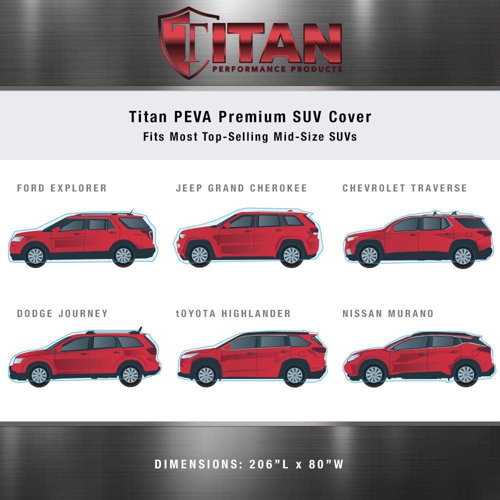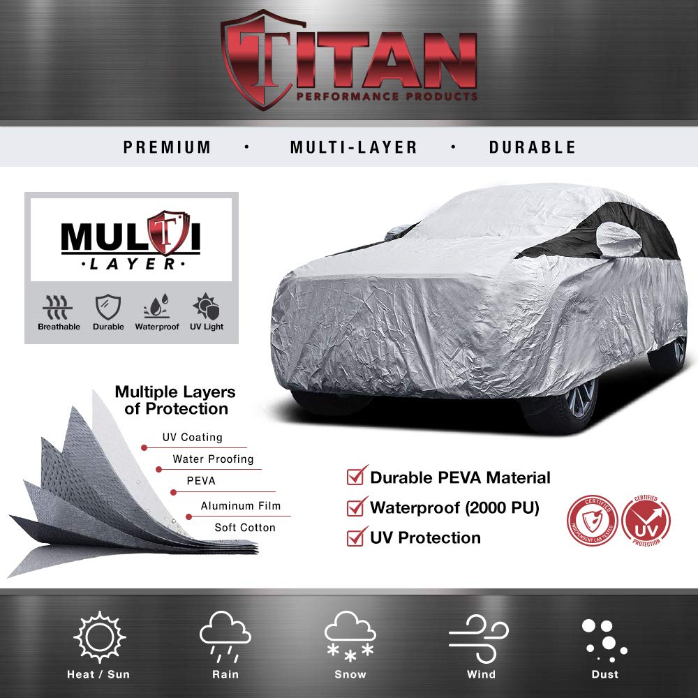 Titan Premium Multi-Layer Peva Car Cover For Mid-Size Suv 188-206''. Waterproof, Uv Protection, Anti-Scratch Protective Lining,