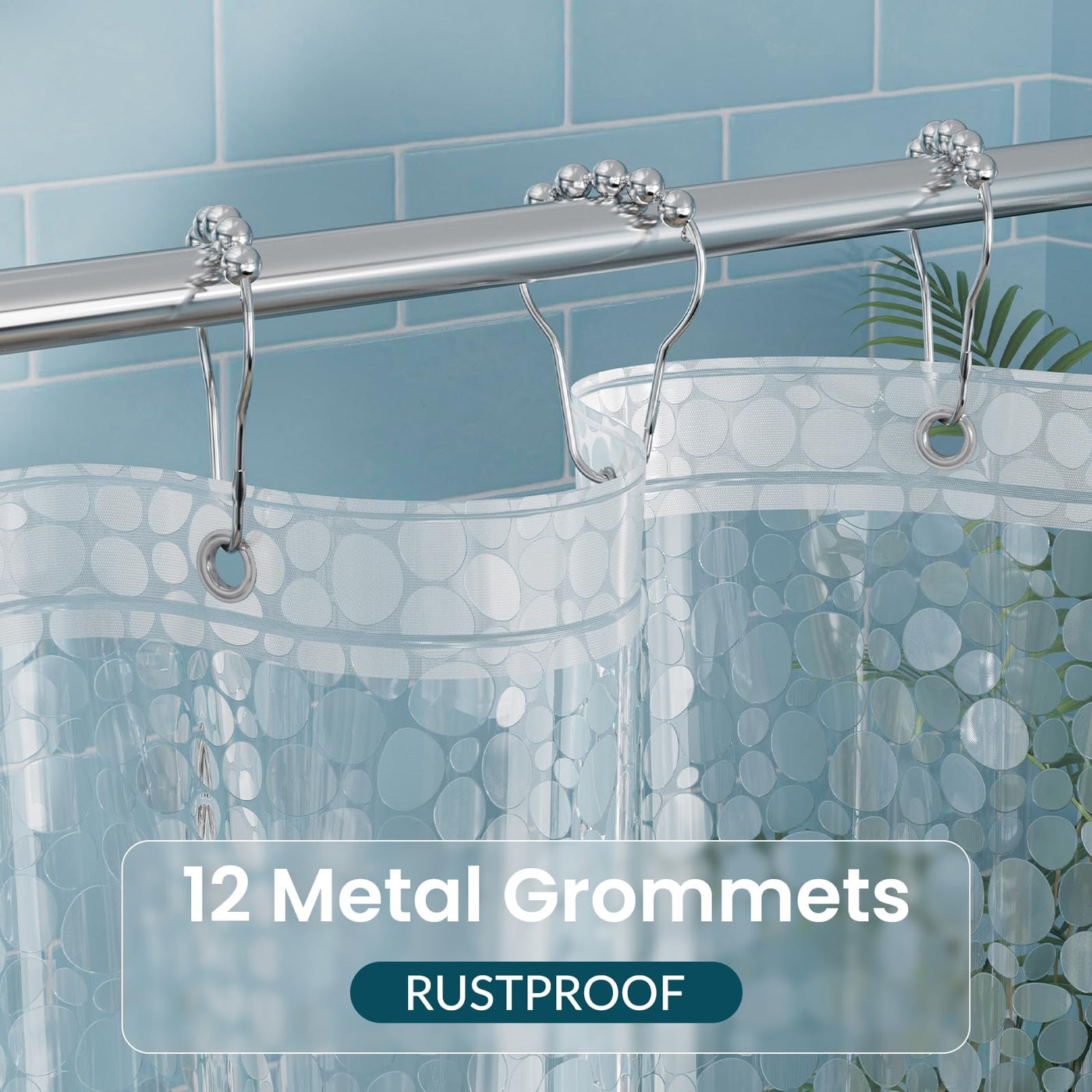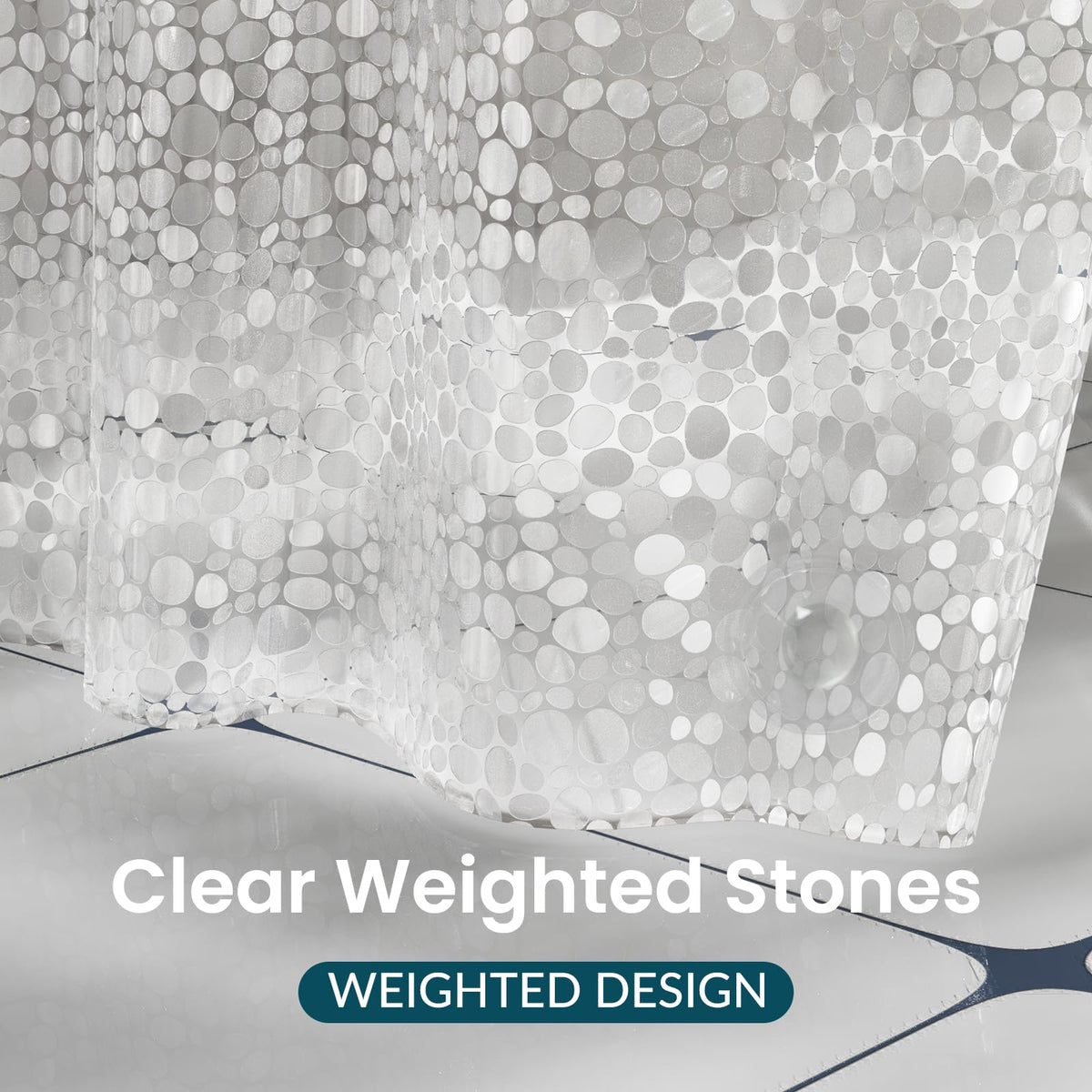 Titanker Clear Shower Curtain Liner With Pebble Pattern, Medium Weight Plastic Shower Liner Peva Waterproof Shower Curtains For Bathroom With Big Stones And Grommets, 72X72 Inches