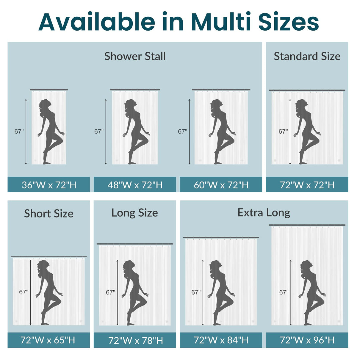 Protect your bathroom with the thin and lightweight shower curtain liner The shower curtain liner is made of PEVA material, waterproof and dry quickly. Choose the shower liner to enjoy a fresh and clean environment. 10 rust resistant metal grommet holes make the shower curtain lining more sturdy and easy to hang. Fit for almost standard-size shower rods. Easy to Clean: Simply clean the shower liner with a damp cloth after showering. Waterproof material: The shower curtain liner features excellent waterproof effect. Great for pairing with your decorative shower curtain. Multi applications: It is suitable for any bathroom at any home, apartment, hotel, dorm, and so on.