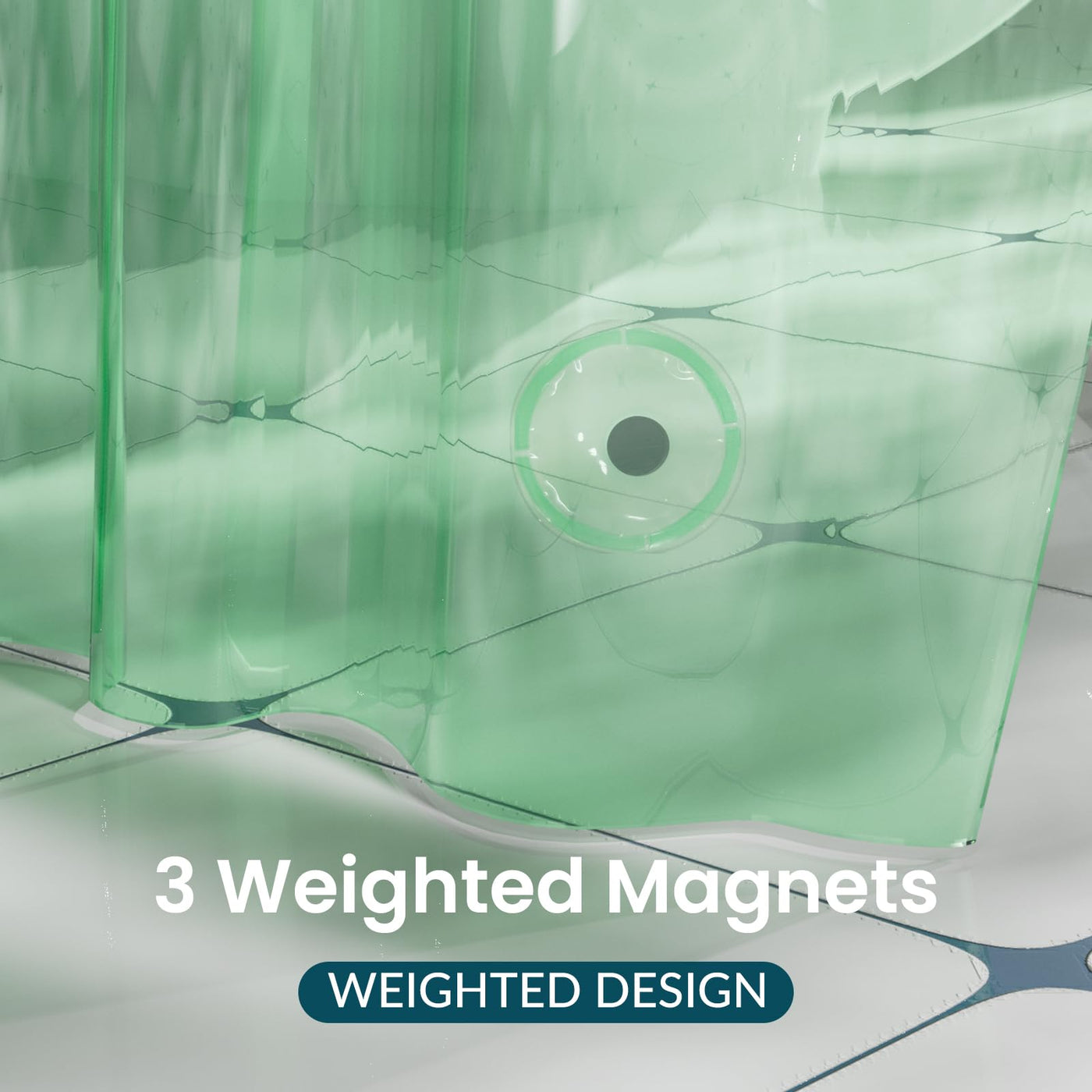 Q: Does the liner come with any features to keep it in place?A: Yes, the liner includes magnets at the bottom, which help keep it in place and prevent water from leaking out into your bathroom.