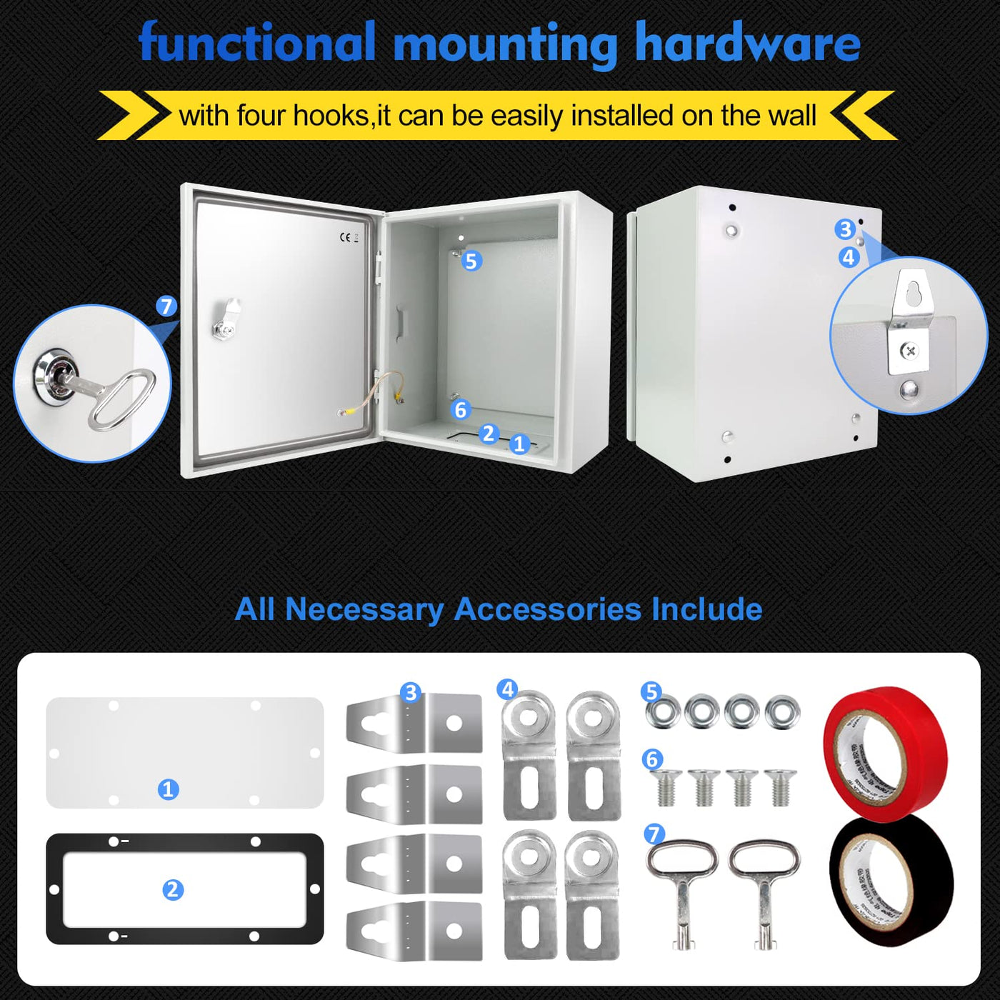 Tocretoare Outdoor Electrical Box Stainless Steel Electrical Box Electrical Enclosure Box IP66 Waterproof, Universal Electrical Project Box with Lock & Mounting Plate From Tocretoare, these junction boxes are IP66 rated, made of industrial strength cold-rolled steel material, has a mounting panel that can be used in a variety of applications