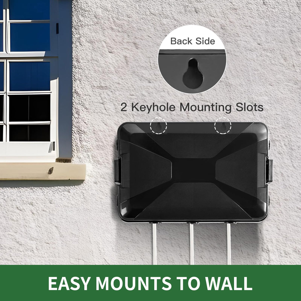 Q: Can I mount this electrical box on a wall?A: Yes, the TOTUFY electrical box includes two keyholes on the backside for wall mounting. It comes with installation accessories such as expansion bolts and self-tapping screws.