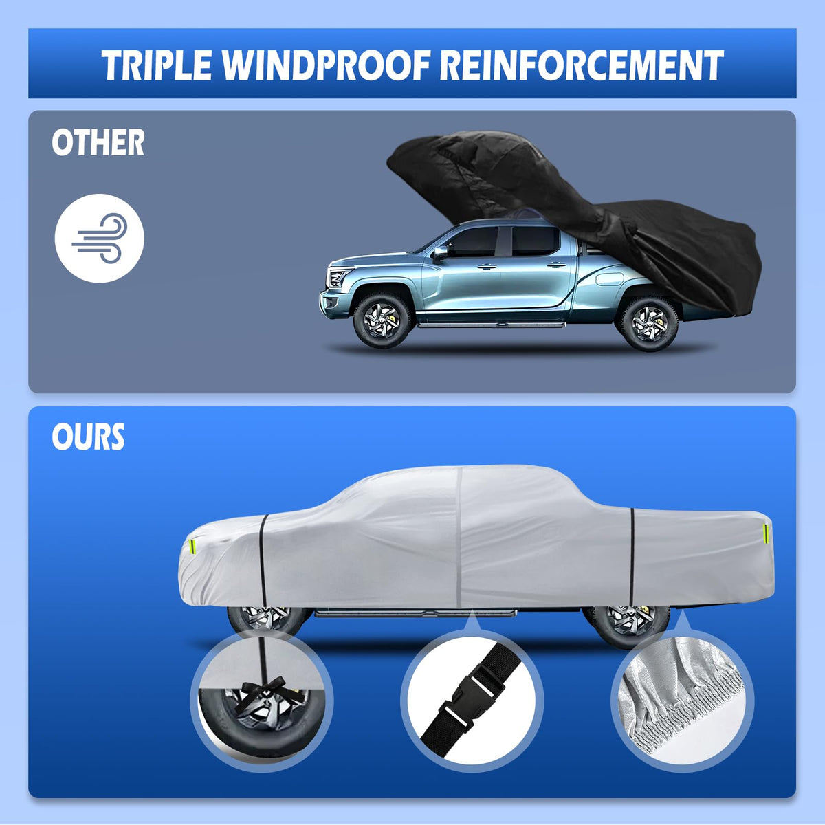 Truck Cover Waterproof All Weather, 6 Layers Pickup Cover With Zipper & Cotton Fit For Toyota Tacoma, Dodge Dakota, Nissan Titan