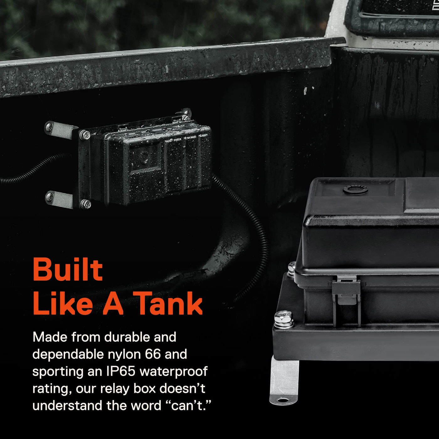 Q: Is this relay box waterproof and durable?A: Yes, the relay box is made from durable nylon 66 and has an IP65 waterproof rating, ensuring it can withstand moisture and harsh conditions, making it suitable for both automotive and marine applications.