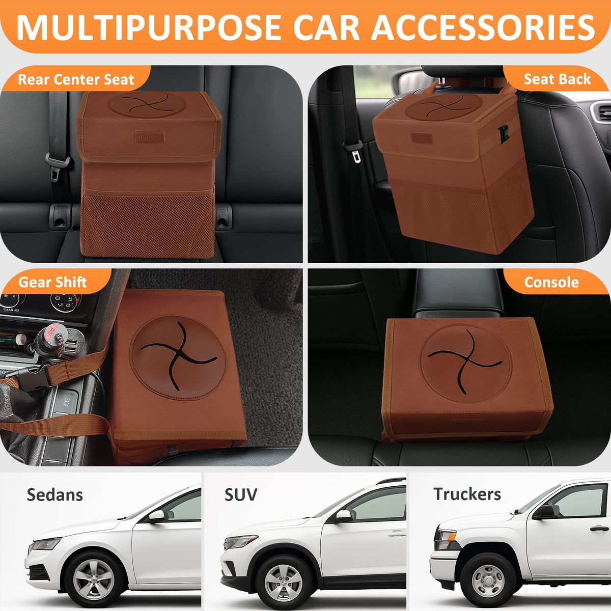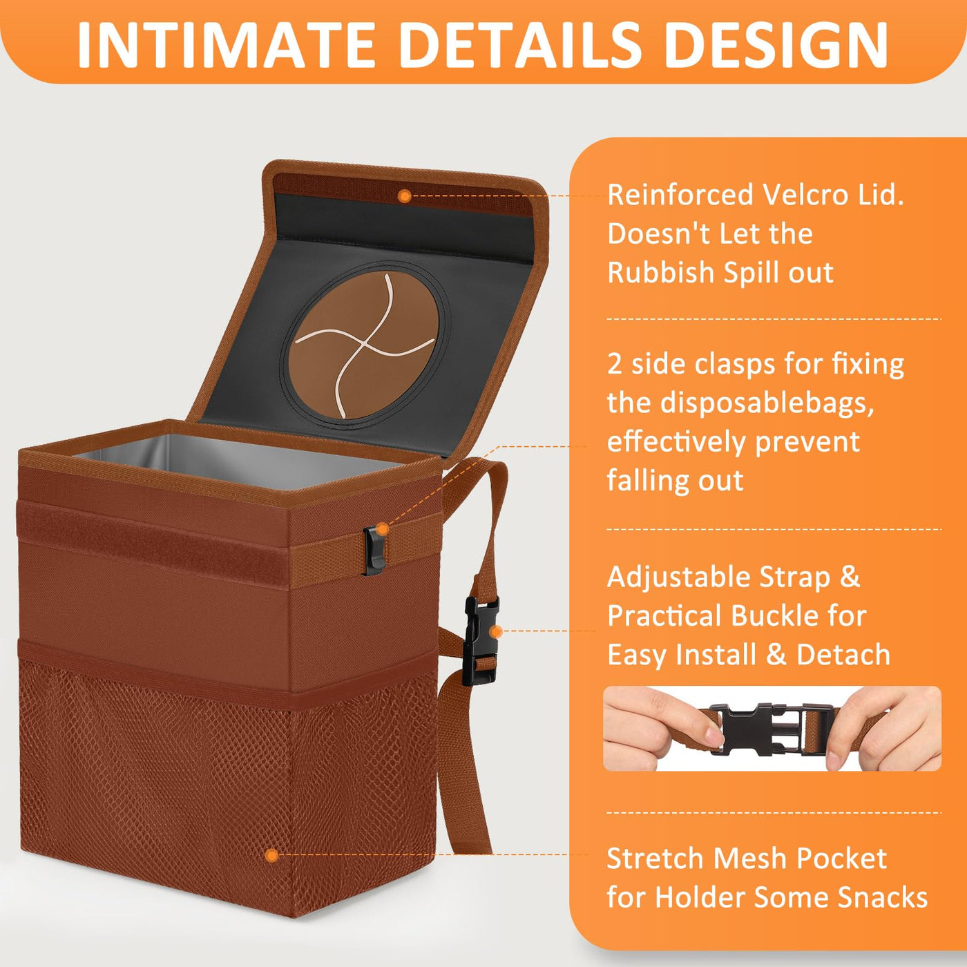 Vankor Car Trash Can, Brown, 2.2 Gallons Capacity, Waterproof, Polyester Material, Adjustable Strap, Hanging Design, Leakproof L