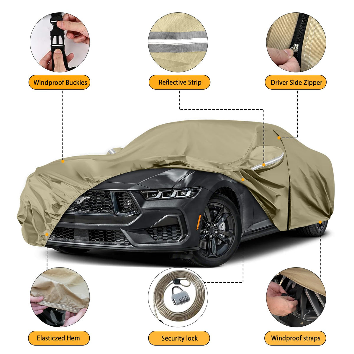 Waterproof Car Covers Replace for 1994-2025 Ford Mustang, Multilayer Heavy Duty with Cotton Liner All Weather Custom-fit Car Cov
