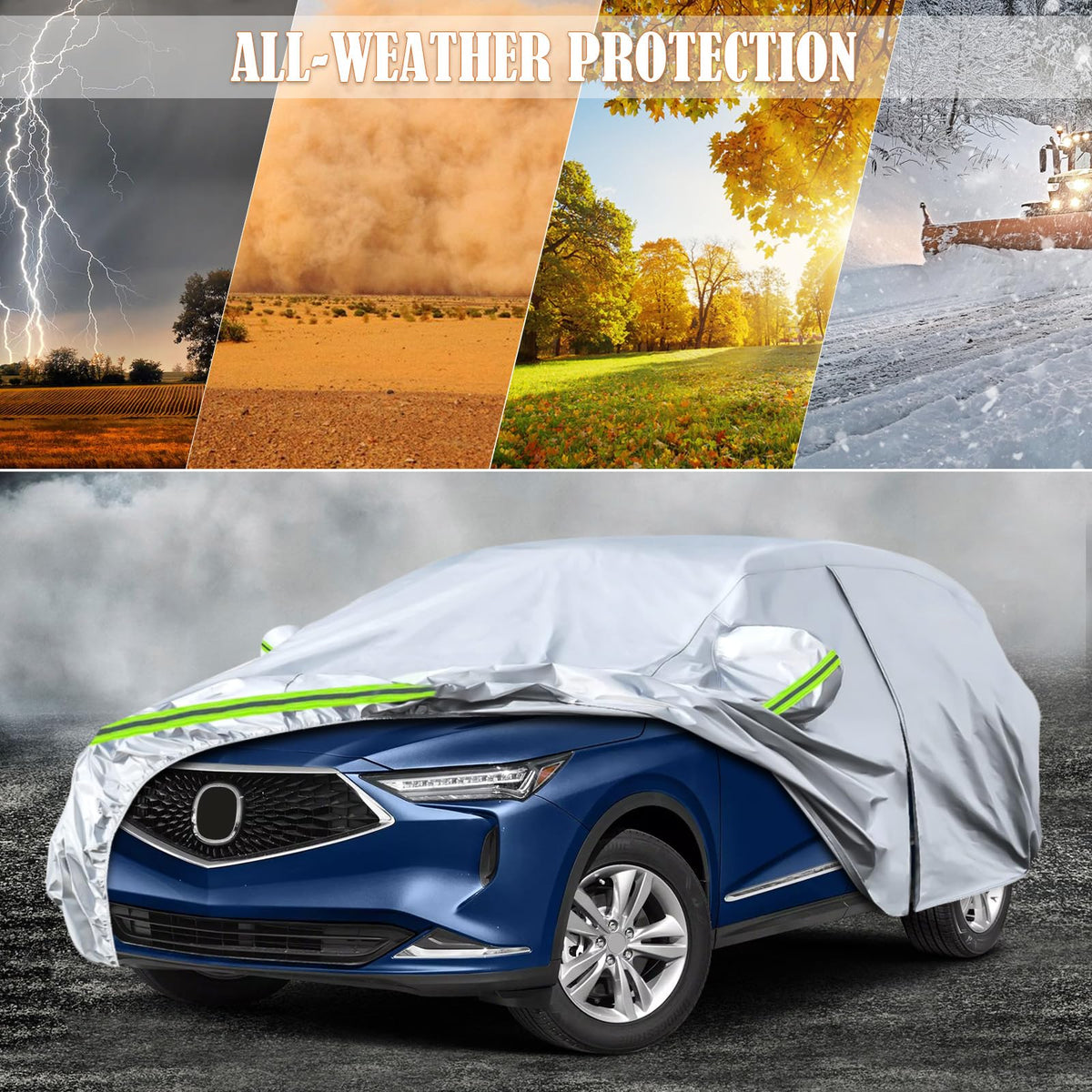 Waterproof Car Covers Replace For 2001-2024 Acura Mdx, 6 Layers Silver All Weather Car Cover With Zipper Door & Windproof Bands