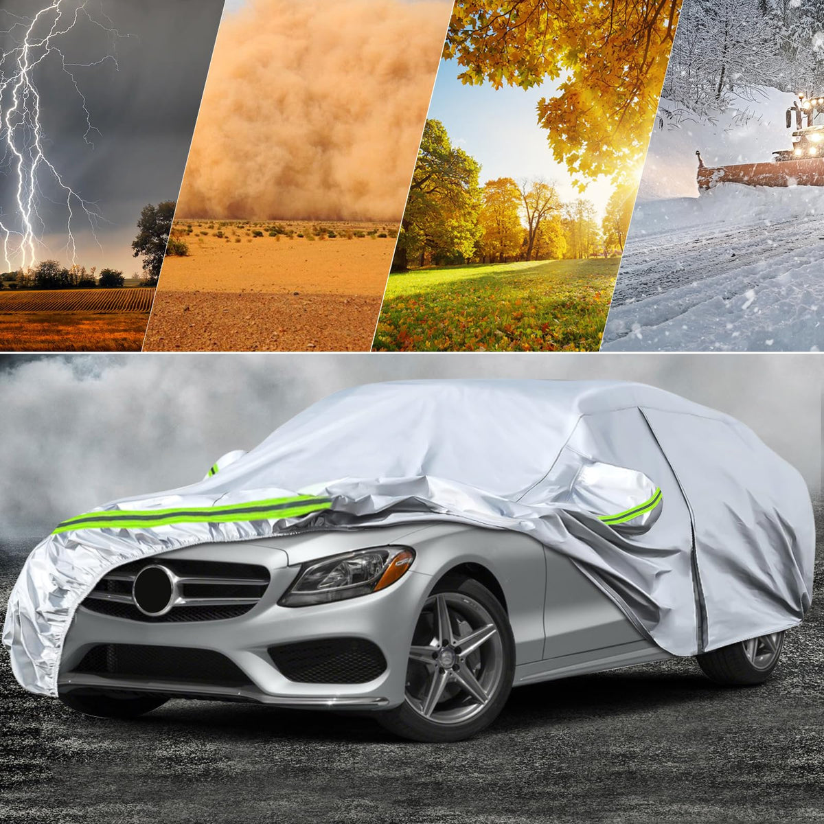 Waterproof Car Covers Replace For 2008-2025 Mercedes Benz C-Class C250 C300 C350, 6 Layers Silver All Weather Car Cover With Zip