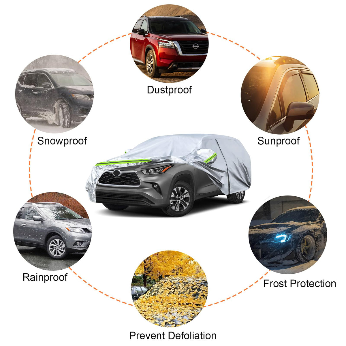 Waterproof Car Covers Replace For 2008-2025 Toyota Highlander, 6 Layers Silver All Weather Car Cover With Zipper Door & Windproo