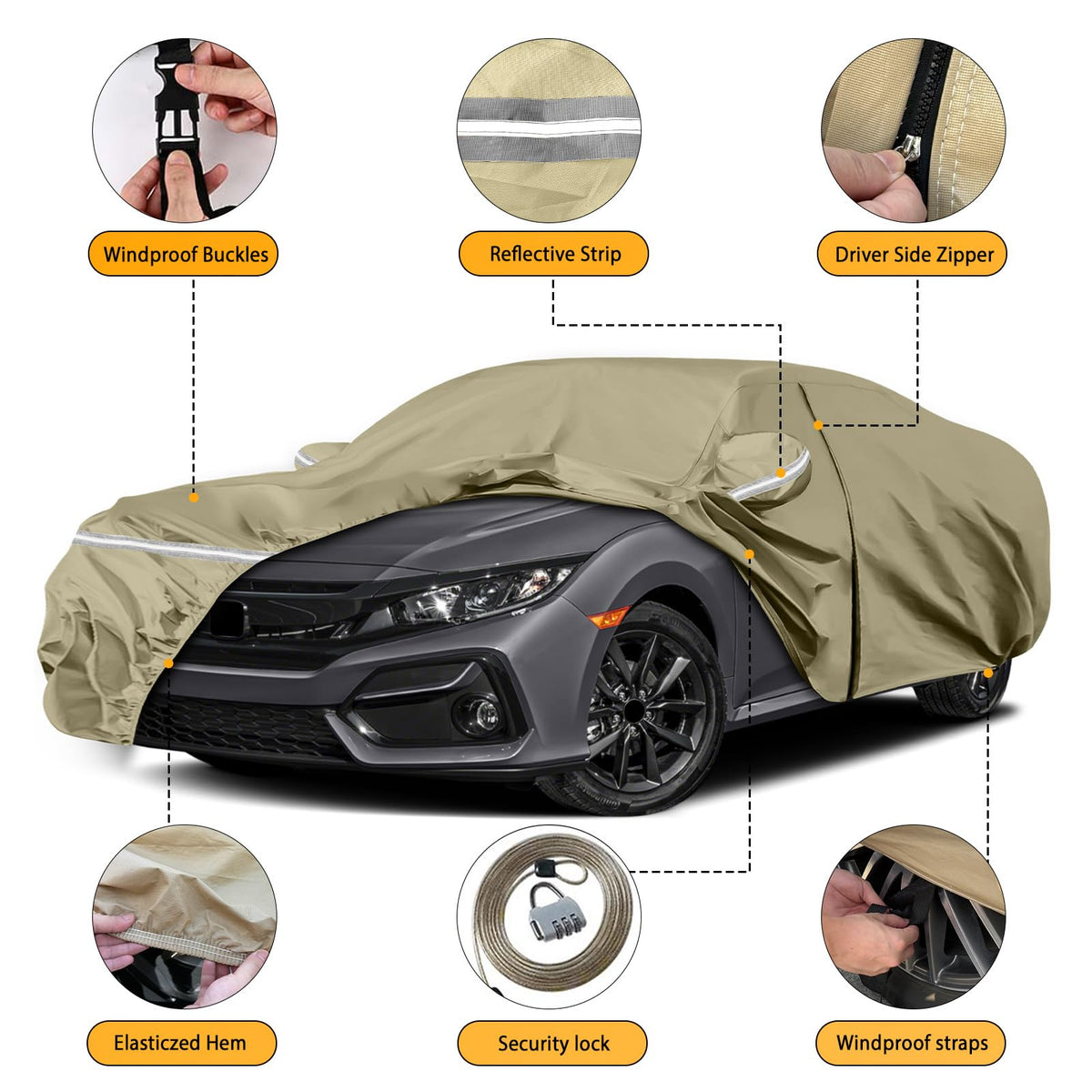 Waterproof Car Covers Replace for 2011-2025 Honda Civic, Multilayer Heavy Duty with Cotton Liner All Weather Custom-fit Car Cove
