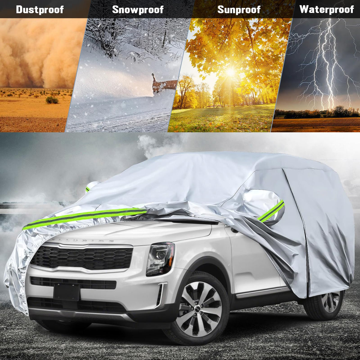 Waterproof Car Covers Replace For 2020-2024 Kia Telluride, 6 Layers Silver All Weather Car Cover With Zipper Door & Windproof Ba