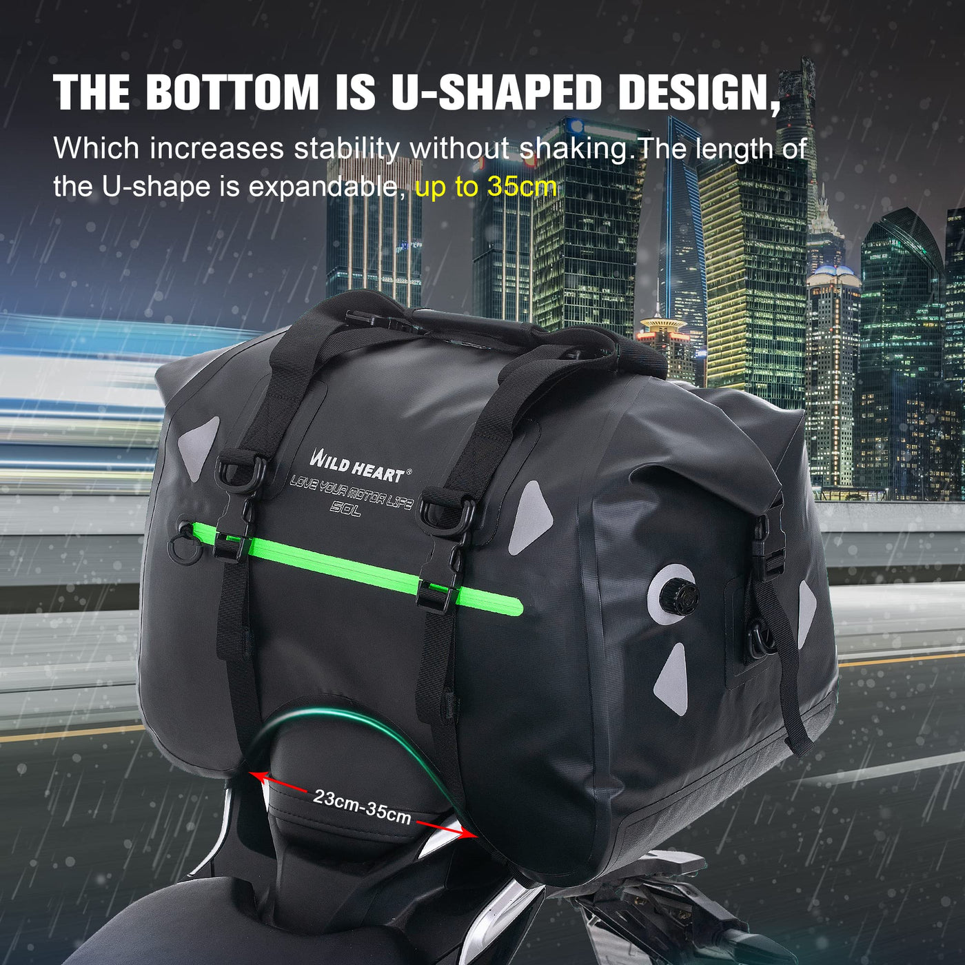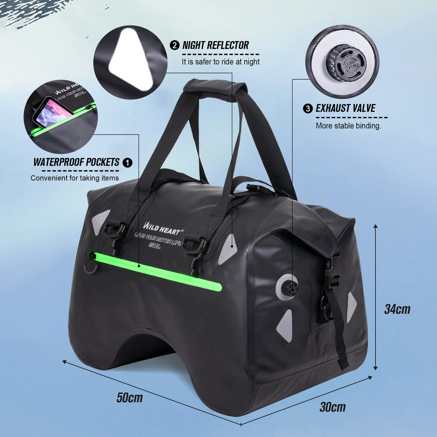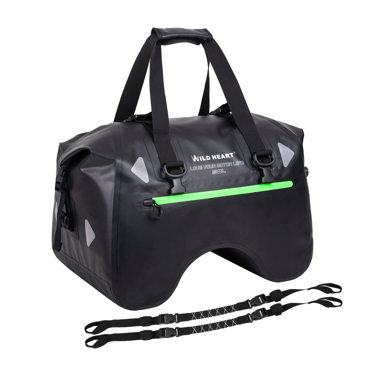 Wild Heart Motorcycle Rear Seat Bag U Shape 50L Waterproof Tail Duffel Bag Motorbike Luggage With Strape (Black)