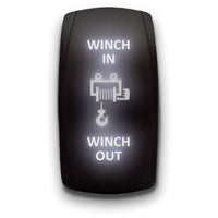 Winch In Winch Out - White - Laser Etched Toggle Switch 7-Pin Momentary Switch Waterproof Black Shell/On-Off-On Dpdt Illuminated Rocker Switch For Auto Truck Boat Marine - 20A 12V/10A 24V