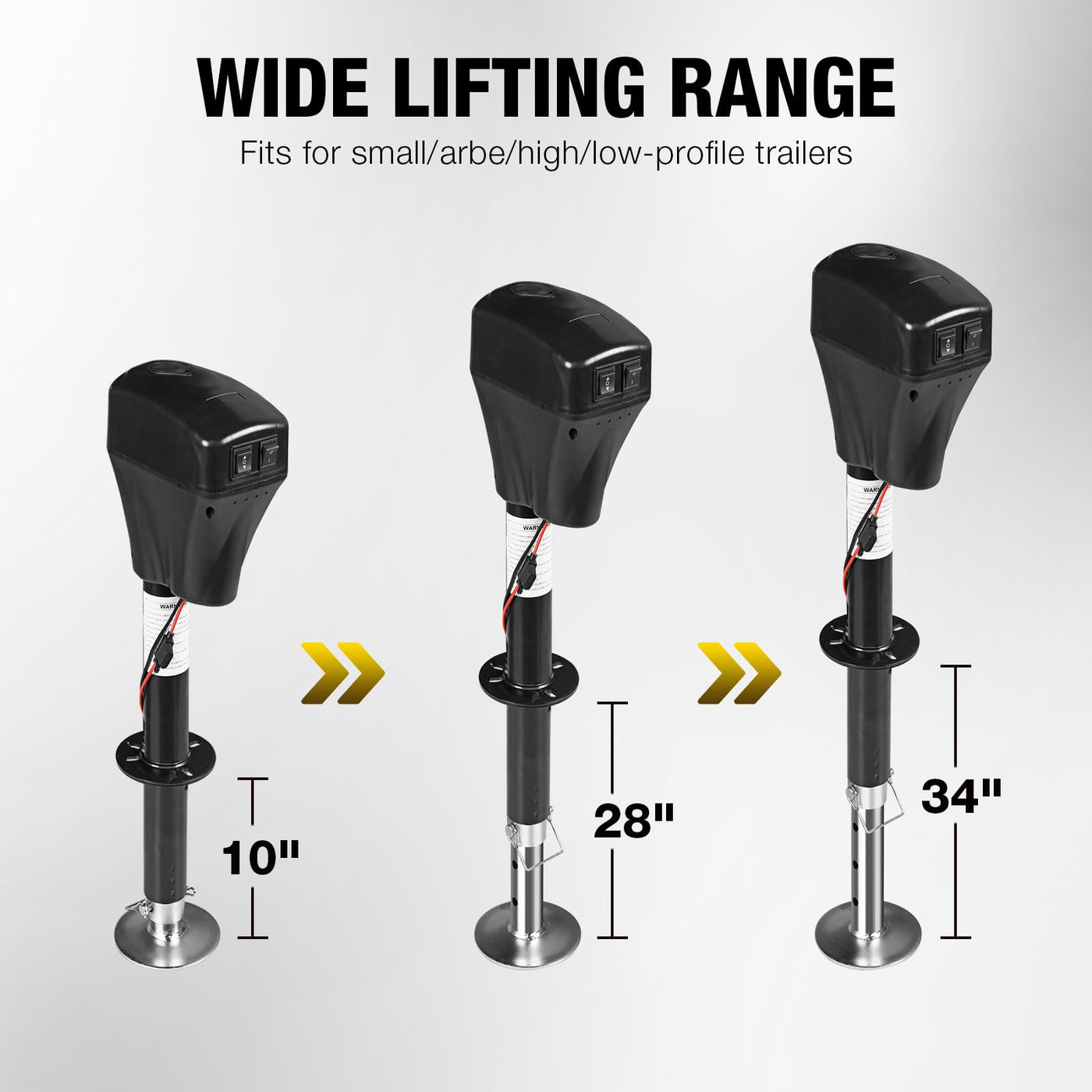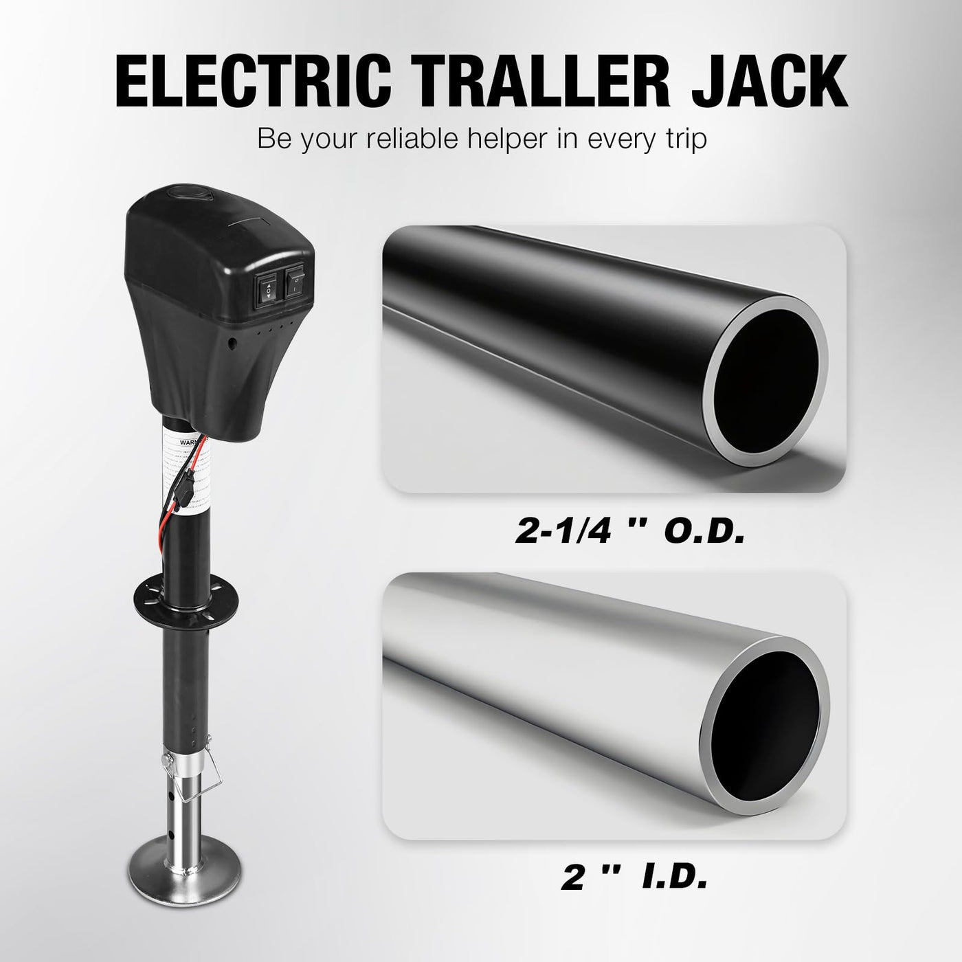 YELLOW JACKET Electric Trailer Jack, 5000lbs Power Tongue Jack 9''-32.5'' with Waterproof Protective Cover & LED Light for Lifti