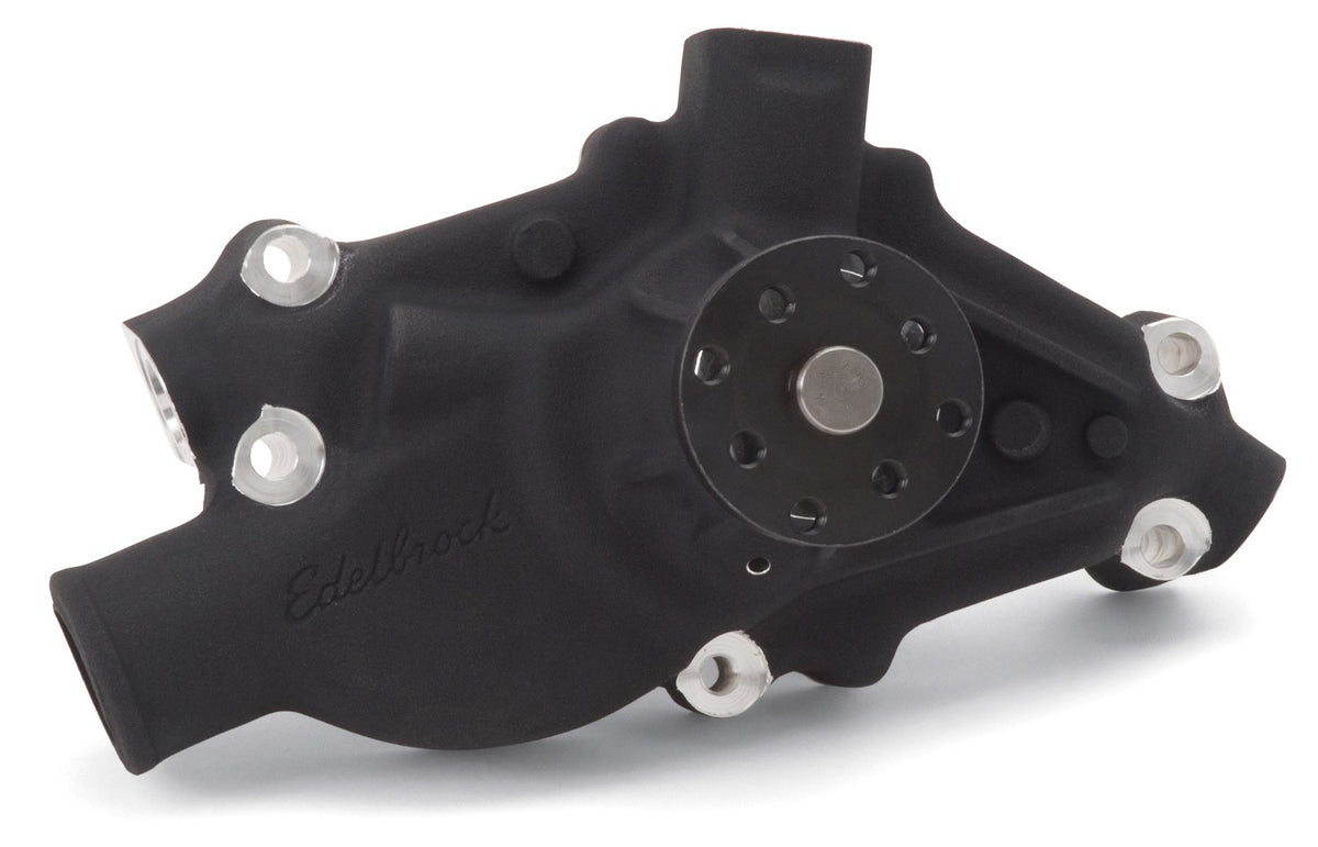 Q: How does the black anodized finish benefit the Edelbrock 8819 water pump?A: The black anodized finish on the Edelbrock 8819 water pump not only enhances its appearance but also provides additional protection against corrosion and wear, ensuring a longer lifespan.