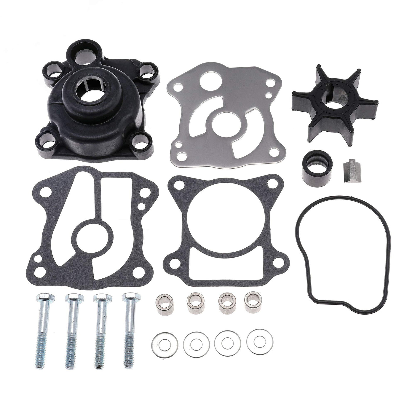 Fitment: For Honda 35 HP Outboards : All years BF35A For Honda 40 HP Outboards : All years BF40A, All years BF40D For Honda 45 HP Outboards : All years BF45A For Honda 50 HP Outboards : All years BF50A, All years BF50D Package: 1 x Impeller Housing (19221-ZV5-000) 1 x Housing Insert (19223-ZV5-000) 1 x Impeller Gasket (19233-ZV5-000) 1 x Impeller Gasket (19242-ZV5-000) 1 x Water Pump Seal (91356-ZV5-000) 1 x Impeller Wear Plate (19231-ZV5-000) 1 x Impeller (19210-ZV5-003) 1 x Water Tube Seal (19253-ZV5-000) 1 x Impeller Key (90752-ZV5-003) 4 x Bolts (90103-ZY1-000) & 4 x Collar (91555-ZV5-000)