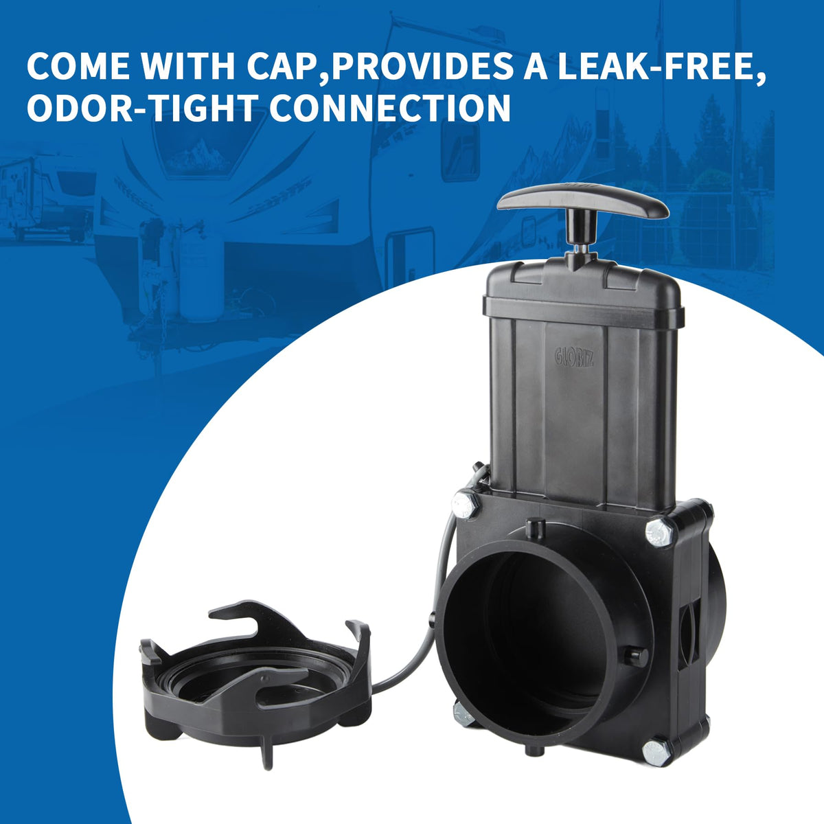 GLOBIZ RV Gate Valve 3-Inch Hub to 3-Inch Lug with Cap Glue on 3'' PVC Sewer Pipe with Cement UV-Resistant Plastic Made(1Pack) B
