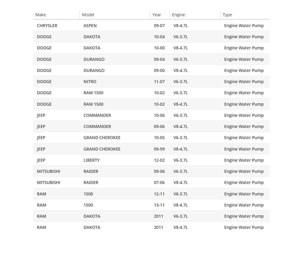 OAW CR4350 Engine Water Pump Replacement for Jeep Liberty, Durango, Dakota, Ram 1500, Nitro, Grand Cherokee (2002 2003 2004 2005