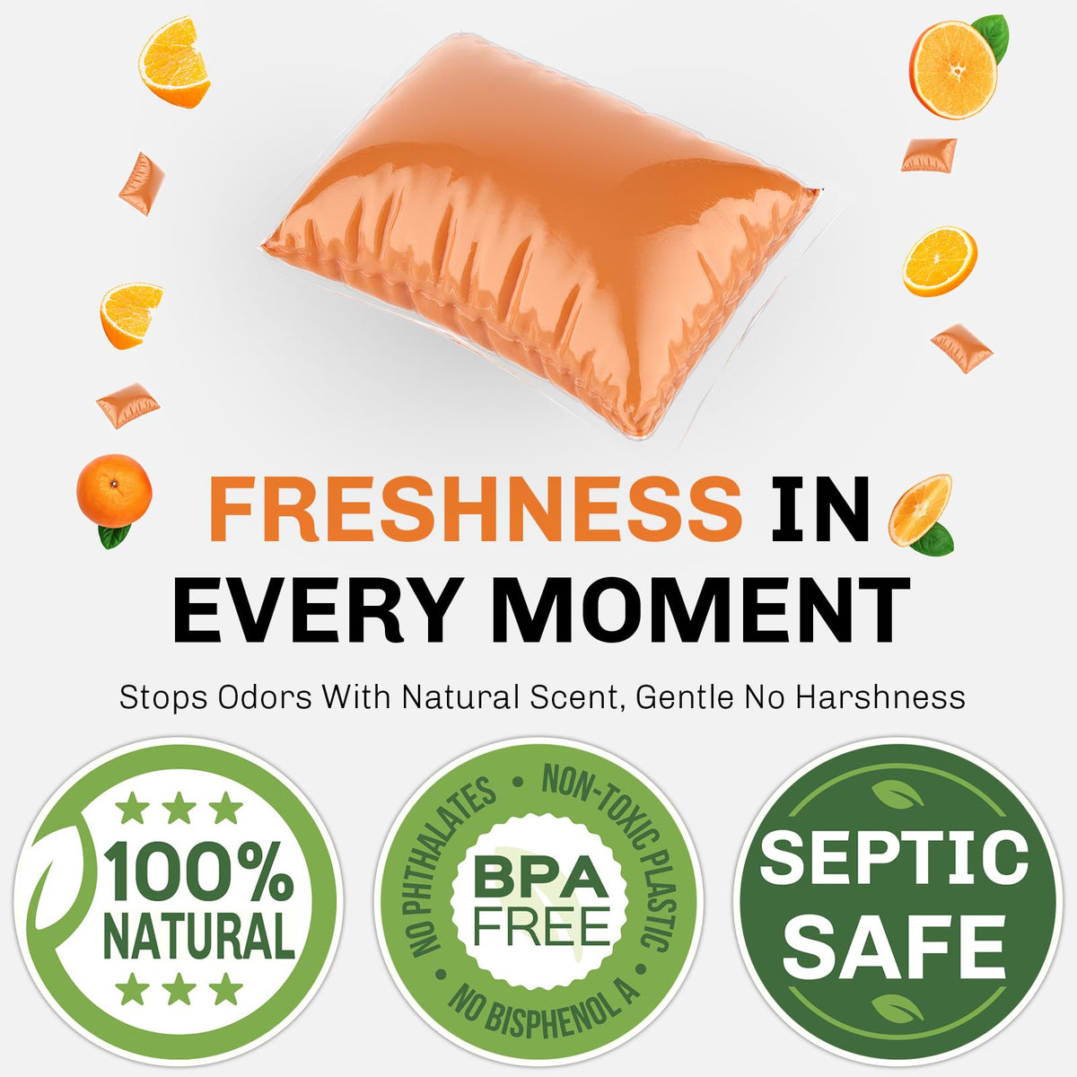 WELLUCK 50 Packs RV Toilet Treatment Drop Ins, Black Tank Deodorizer for Camper, Marine Portable Toilet, Break Down Waste and Tissue, Septic Tank Treatment, Kit for 50 Week(Citrus)