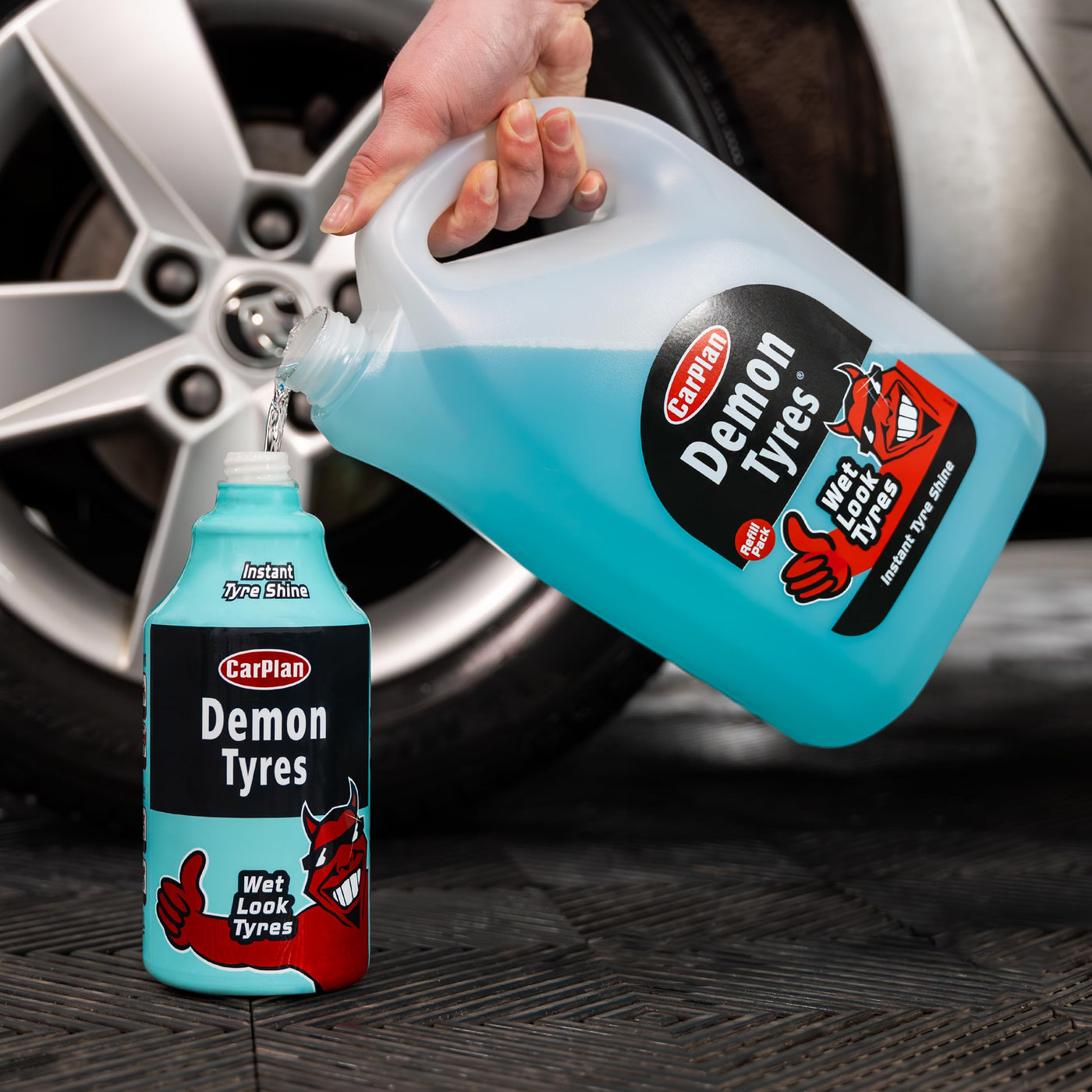 Q: Can I use the Carplan Demon Tyres refill pack with other spray bottles?A: The Carplan Demon Tyres 169 fl Oz refill pack is designed for use with your 1 Litre Spray Trigger Bottle, ensuring compatibility for easy application.