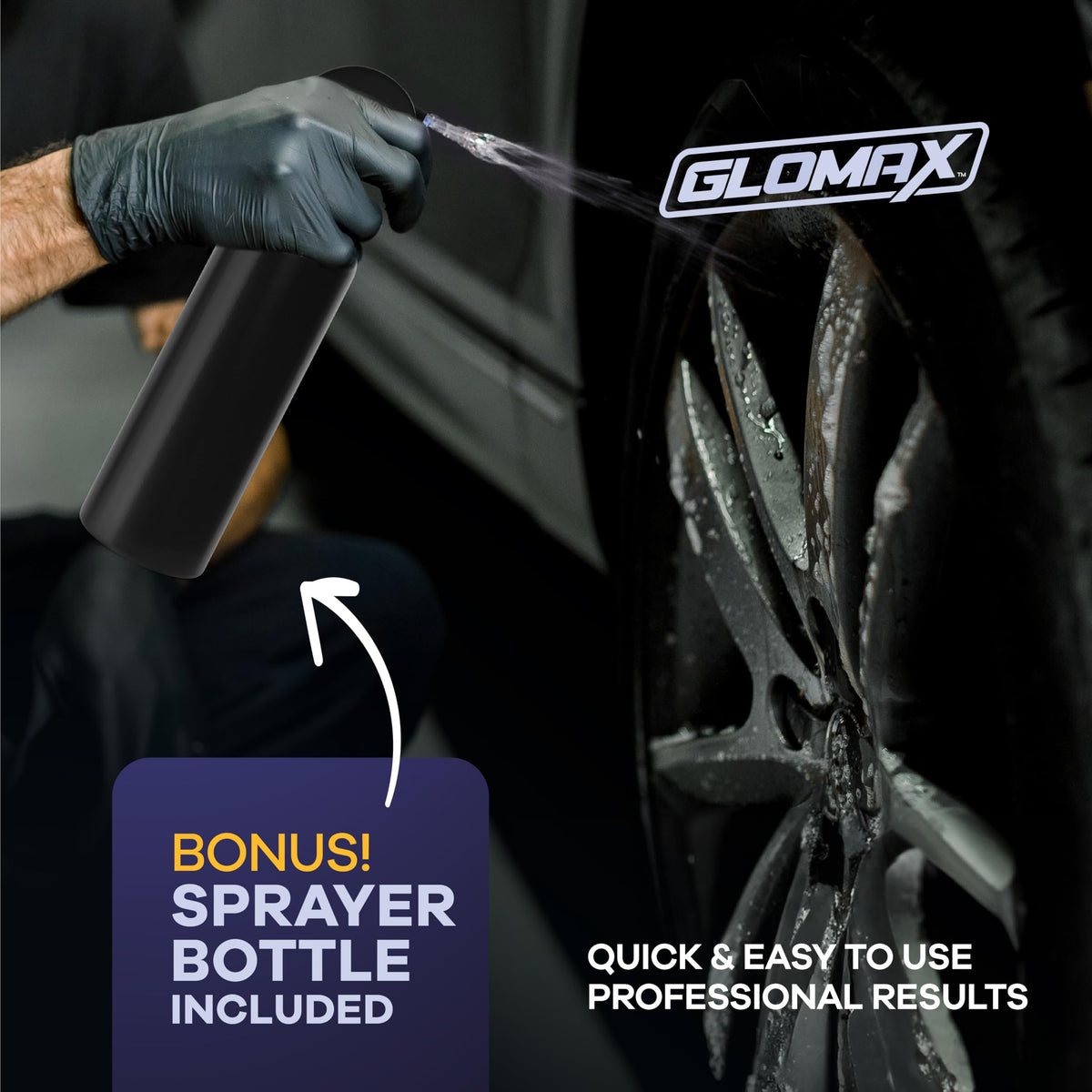 GLOMAX Wheel Cleaner (1 Gallon) - Non Acid Rim Cleaner - All in One Wheel and Tire Cleaner for Car Detailing - Made in USA Tire