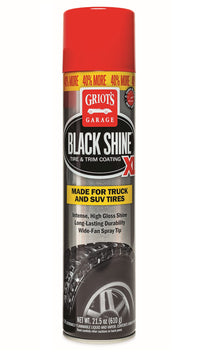 Q: How does Griot's Garage Black Shine XL enhance the appearance of my tires?A: Griot's Garage Black Shine XL provides a best-in-class glossy finish that enhances the overall appearance of your tires, making them look sleek and well-maintained. Its smooth application ensures even coverage, resulting in a brilliant shine.