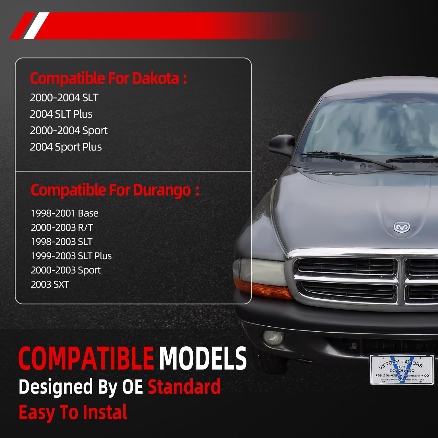 ' Window Regulator Assembly W/Motor Compatible For Dakota : 2000-2004 SLT 2004 SLT Plus 2000-2004 Sport 2004 Sport Plus Compatible For Durango : 1998-2001 Base 2000-2003 R/T 1998-2003 SLT 1999-2003 SLT Plus 2000-2003 Sport 2003 SXT ''
