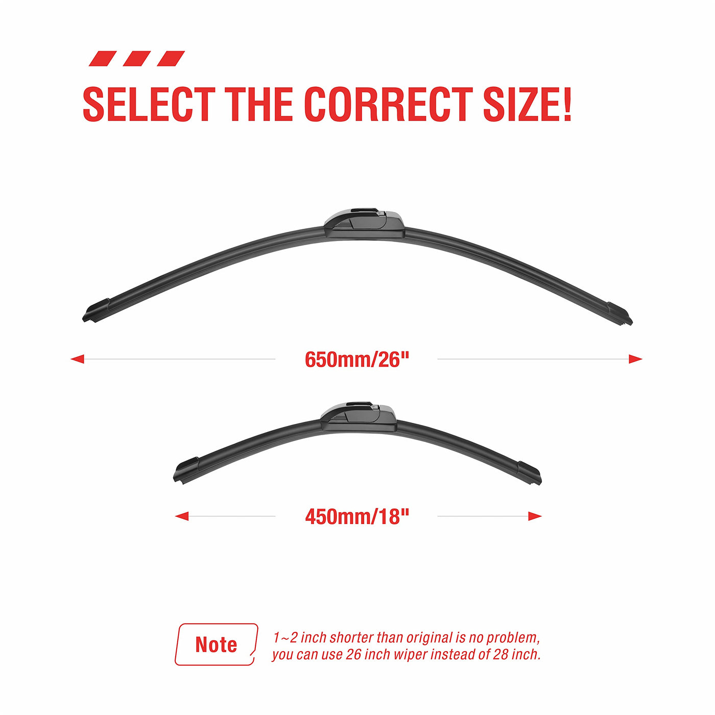 Oem Quality Performance Premium Beam Windshield Wiper Blades 26 And 18,All-Season Auto Replacement Wiper Blades,Fit Honda Accord