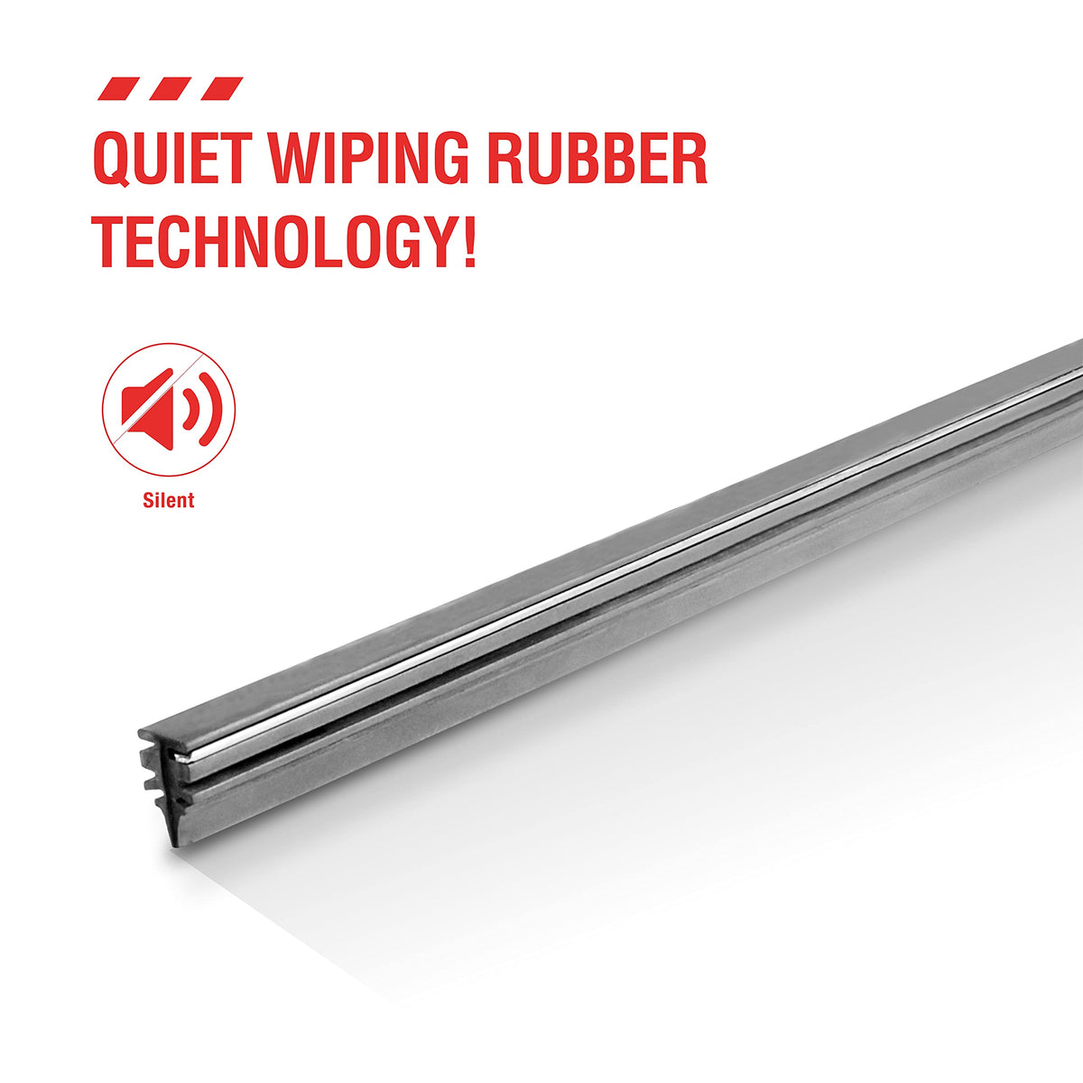 Q: What materials are used in the construction of these wiper blades?A: These wiper blades feature a metal base, providing enhanced stability and durability during use, ensuring they perform reliably over time.