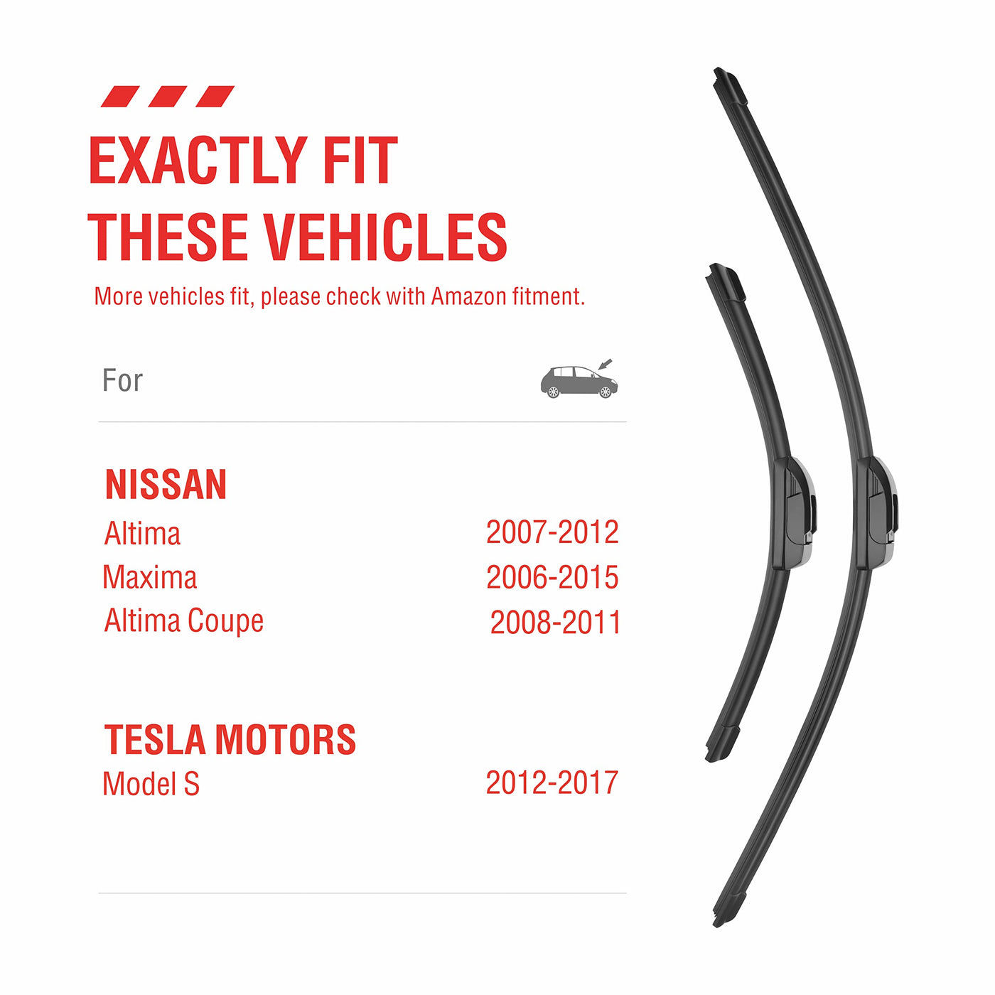 Q: Are these wiper blades compatible with my Nissan Altima?A: Yes, these OEM quality performance wiper blades are specifically designed to fit Nissan Altima models from 2007 to 2012, ensuring an exact fit for reliable performance.