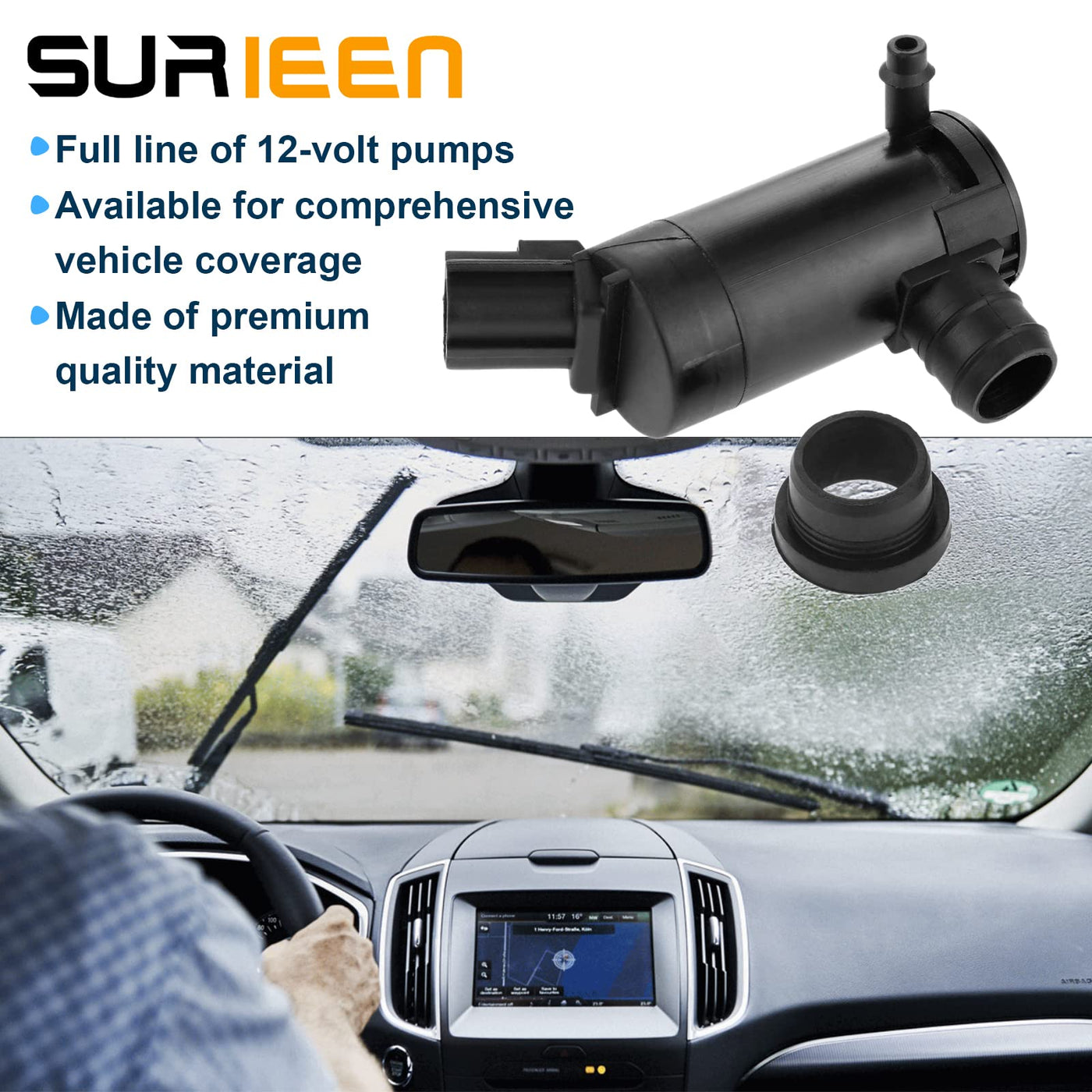 Q: What is included in the package when purchasing the Windshield Washer Pump?A: The package includes one Windshield Washer Pump and one rubber grommet. This ensures that you have the necessary components for installation right out of the box.
