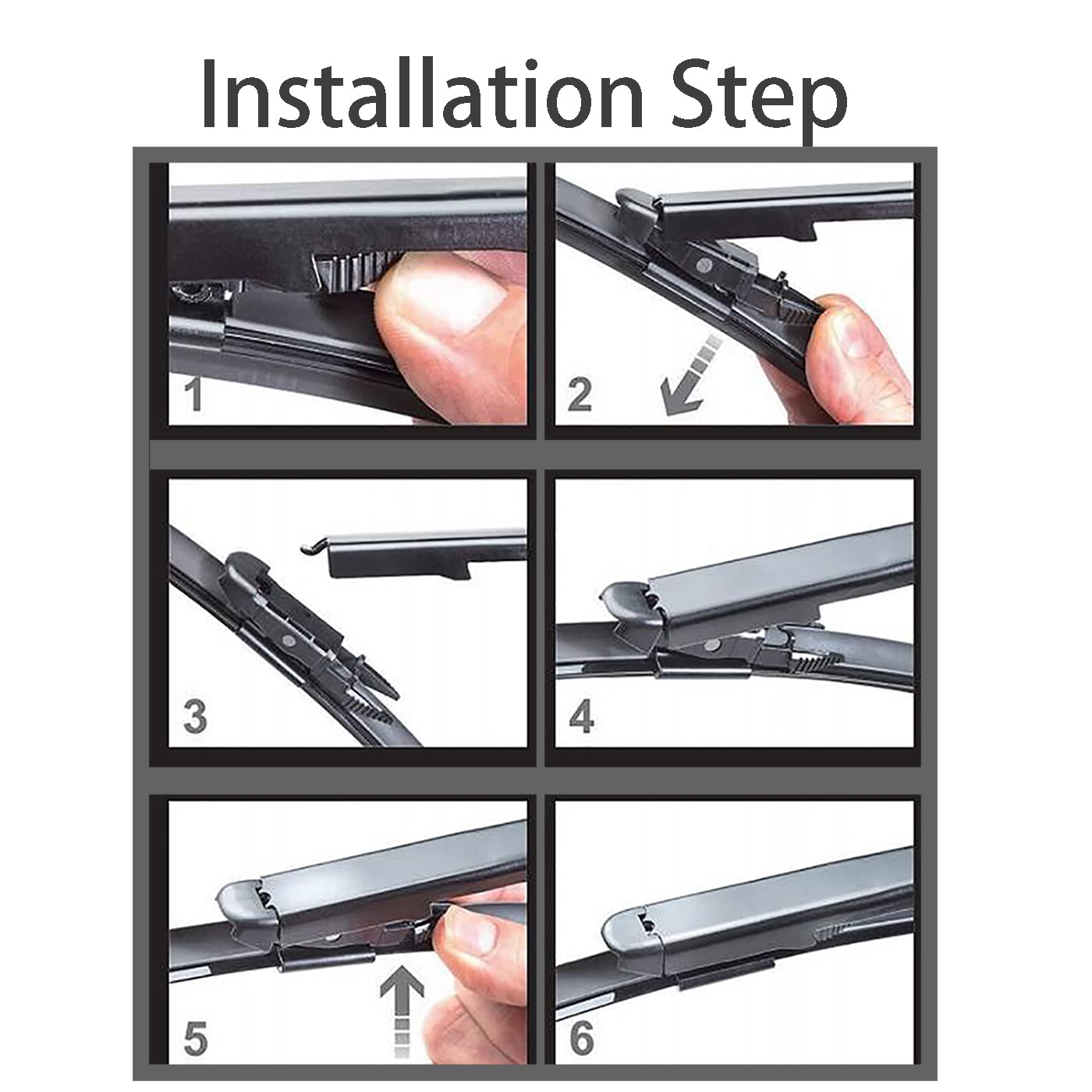 Q: How do I install the wiper blades?A: Installation is easy and straightforward. Simply remove the old wiper blades and attach the new ones by following the included instructions. Make sure to check that the pinch tab fits securely to your wiper arm.