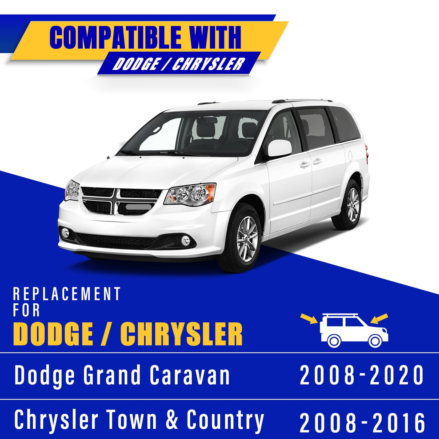Q: Are these windshield wiper blades compatible with my 2008-2019 Dodge Grand Caravan?A: Yes, these wiper blades are specifically designed as original equipment replacements for the 2008-2019 Dodge Grand Caravan, ensuring a perfect fit and optimal performance.
