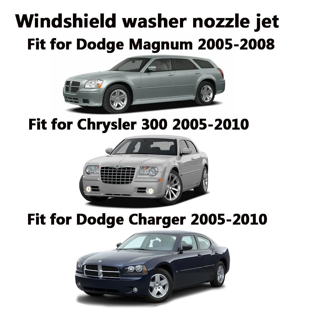 Q: What vehicles are compatible with these windshield washer nozzles?A: These windshield washer nozzles are compatible with a variety of vehicles including Dodge Magnum (2005-2008), Dodge Charger (2006-2010), Chrysler 300 (2005-2010), and various Dodge RAM models (2009-2024).