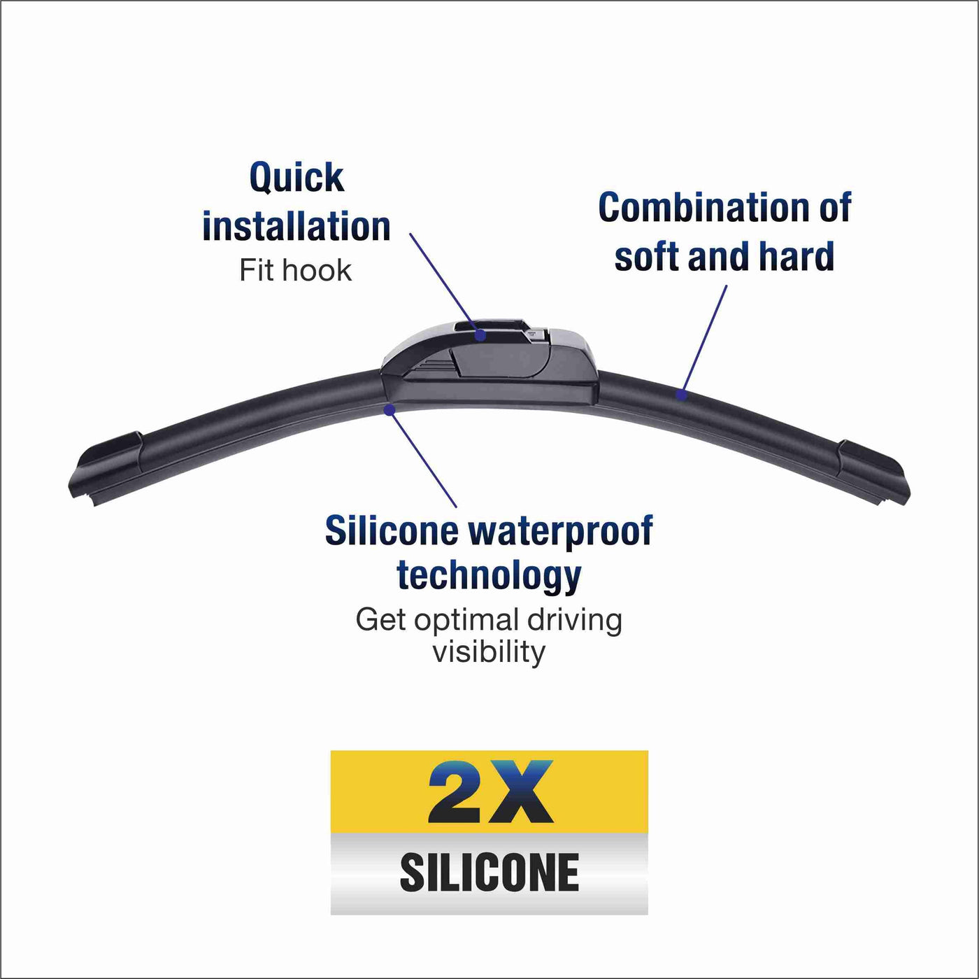 Q: How do the dual steel springs enhance wiper performance?A: The dual steel springs create 2,000 force points that help the wiper blades fit seamlessly against the windshield, providing optimal contact and effective cleaning performance.