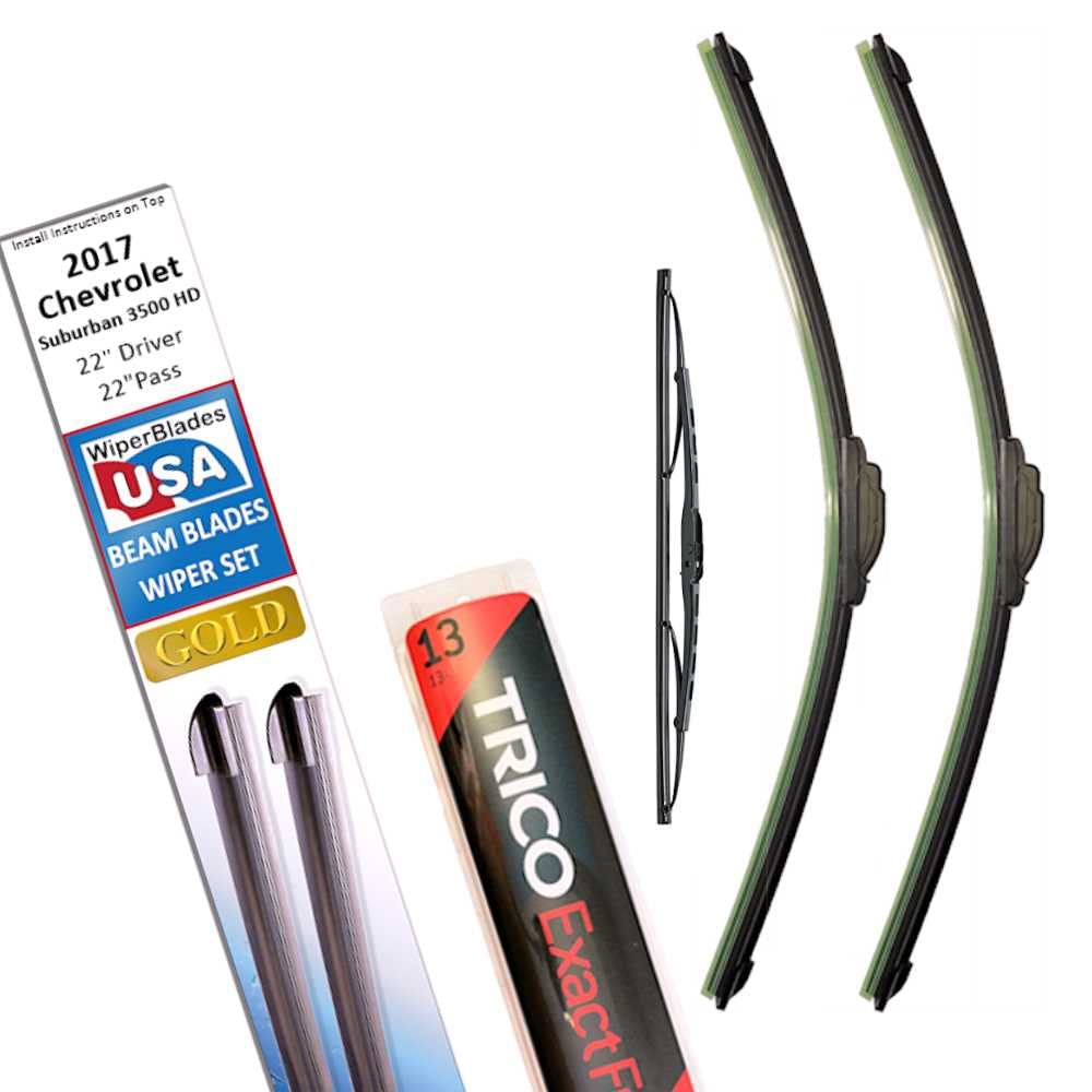 Beam Blade Wipers Replacement Set For 2017 Chevrolet Suburban 3500 Hd W/Rear - Wiperbladesusa Gold Beam Wiper Blades Wipers Set