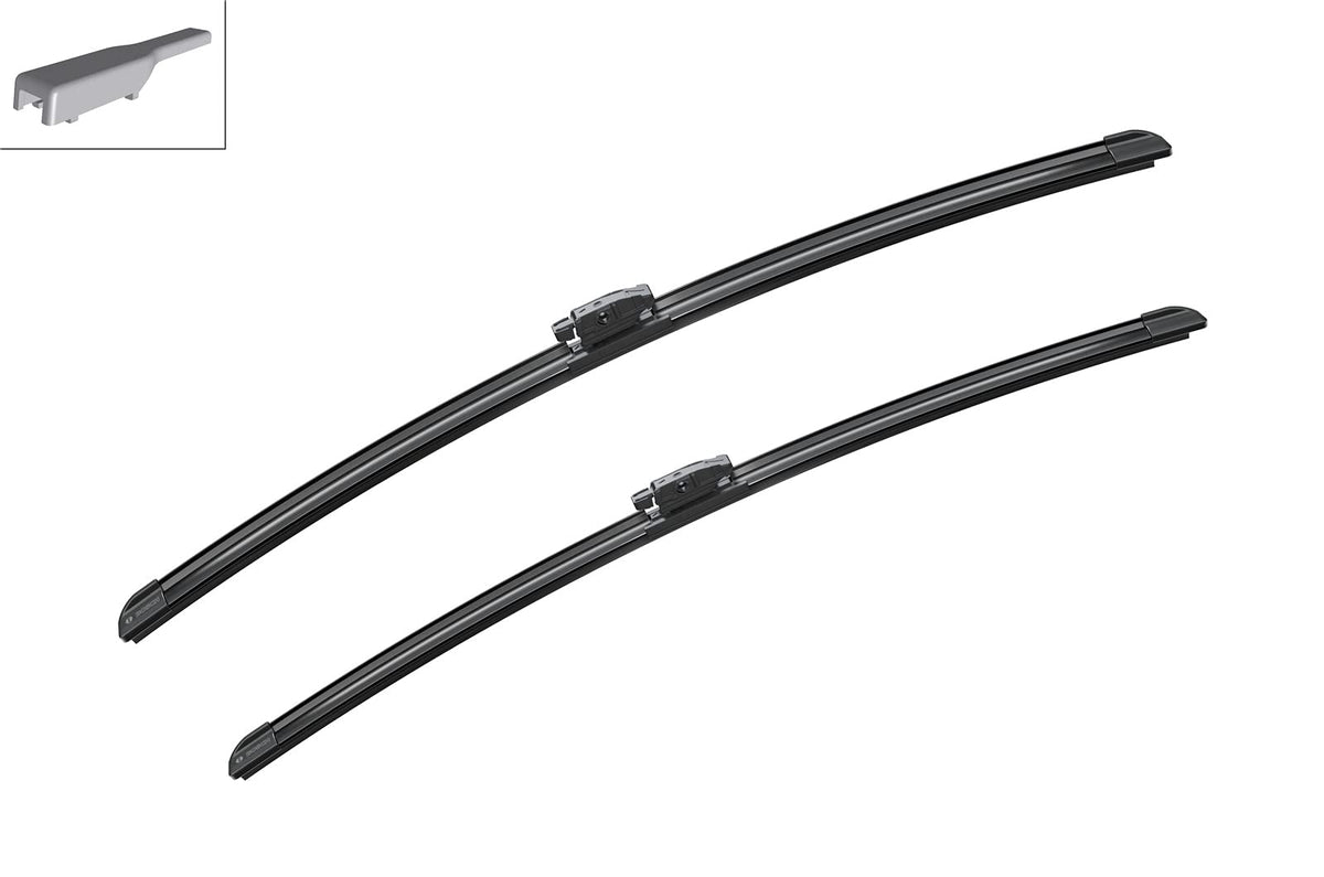 Bosch Aerotwin'S Patented Beam Design Contains No Metal Or Plastic Brackets, Joints Or Hinges, Offering An Ideal Technology Upgrade For Vehicles Originally Fitted With Conventional Wiper Blades. The Specially Blended Dual Rubber Compound With Graphite Coating Removes Even The Smallest Traces Of Water For Exceptional All-Weather Visibility And Smooth, Quiet Operation. Specific Beam Curvature For Oe Specialty Wiper Arm Types, Coupled With Dual Precision-Tensioned Steel Springs, Ensures Uniform Pressure Along The Entire Blade Length For Crystal Clear Visibility. Built-In Asymmetrical Wind Spoiler Uses Air Flow To Increase Blade-To-Windshield Contact - For Consistent Performance At Highway Speeds. Wind Spoiler Also Serves To Protect The Tension Springs From Damage By Severe Weather Elements For Increased Durability And Long Life. Pre-Assembled Oe Style Adapter Provides Oe Fit And Function For Simple, Easy Installation On Specific Vehicles. Set Of 2. Note: Aerotwin Wiper Blades Are Designed To Fit Vehicles With Specific Wiper Arm Connnection Types - They Are Not Universal Fit Wiper Blades. Please Verify Specific Vehicle Fitment Details With Fit Checker Above.