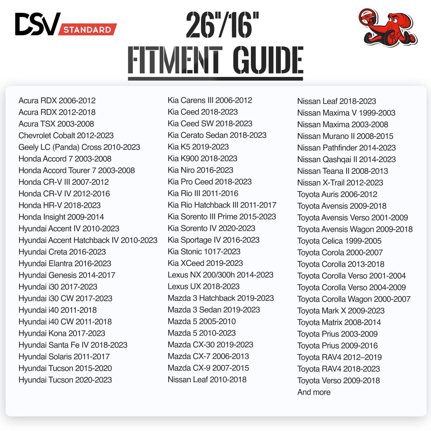 Dsv Standard Windshield Wiper Blades, 26 And 16 Car Wiper Blades With Universal U/J Hook, Automotive Replacement Wiper Bla