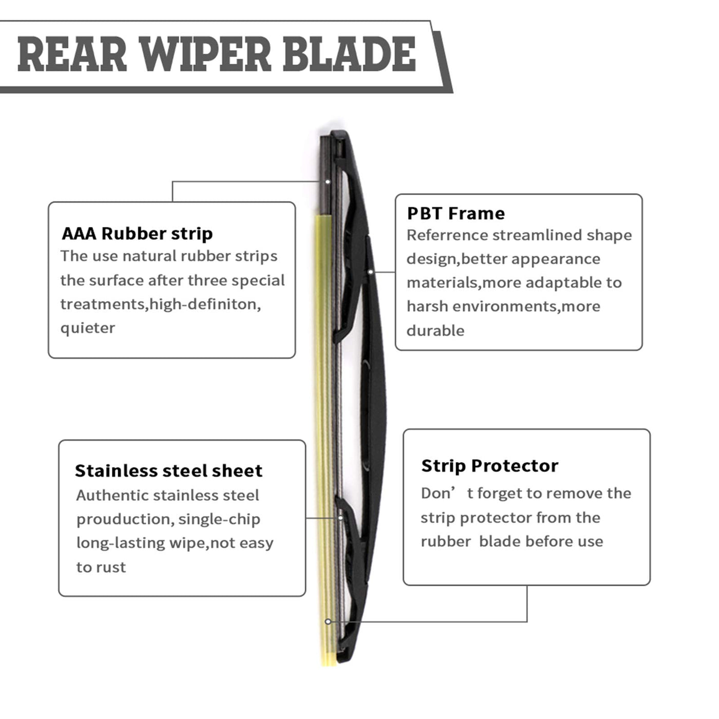 Easy Install And Removal: Including Remove Tools, Nut And Wrench. Please See The Vedio Follow The Installation Instructions Fitment: Fit For Ford Escape 2008-2012 Fit For Ford Flex 2009-2019 Fit For Mercury Mariner 2008-2011 Fit For Lincoln Mkt 2009-2013 Fit For Mazda Tribute 2008-2011 Specification: Rear Wiper Arm Length:282Mm Rear Wiper Blade Length:312Mm Repaces Oem Part Number:25820122 8L8Z17526C 8L8Z17C526B 8L8Z17526-C 8L8Z-17526-C Packing Includes: 1 Rear Wiper Arm 1 Rear Wiper Blade 1 Rear Wiper Cover 1 Rear Wiper Nut 1 Install Wrench Product Features: Install: Includes Nut And Tools Clear: Used Nature Rubber Durability:70%Pbt +30% Fuberglass Weather Resistant: 304H Steel Note: * Please Remove The Green Protector Before Use * Please Make Sure Your Car Meet The Following Models Before Place Order * Please Follow The Instructions Vedio To Install * Kindly Find The Image Description Make Sure All Plastic/Metal Is Removed From The Wiper Motor Shaft Or The New Arm Will Not Fit!!