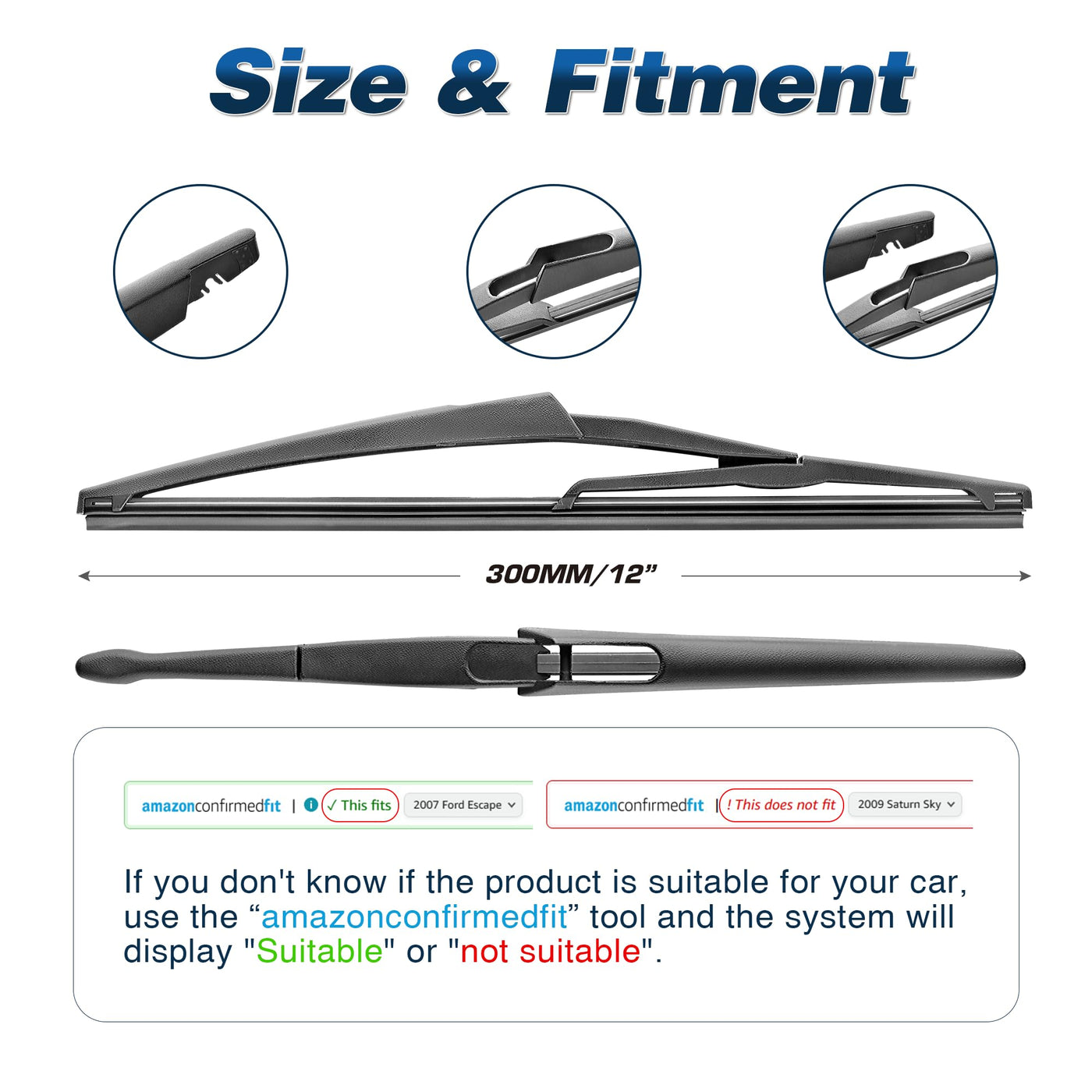 Jarhot 12 Inch Rear Wiper Blade Replacement For Nissan Rogue 2023-2008 Qashqai 2023-2017 Juke 2017-2011 Pathfinder 2020-2013 Kic