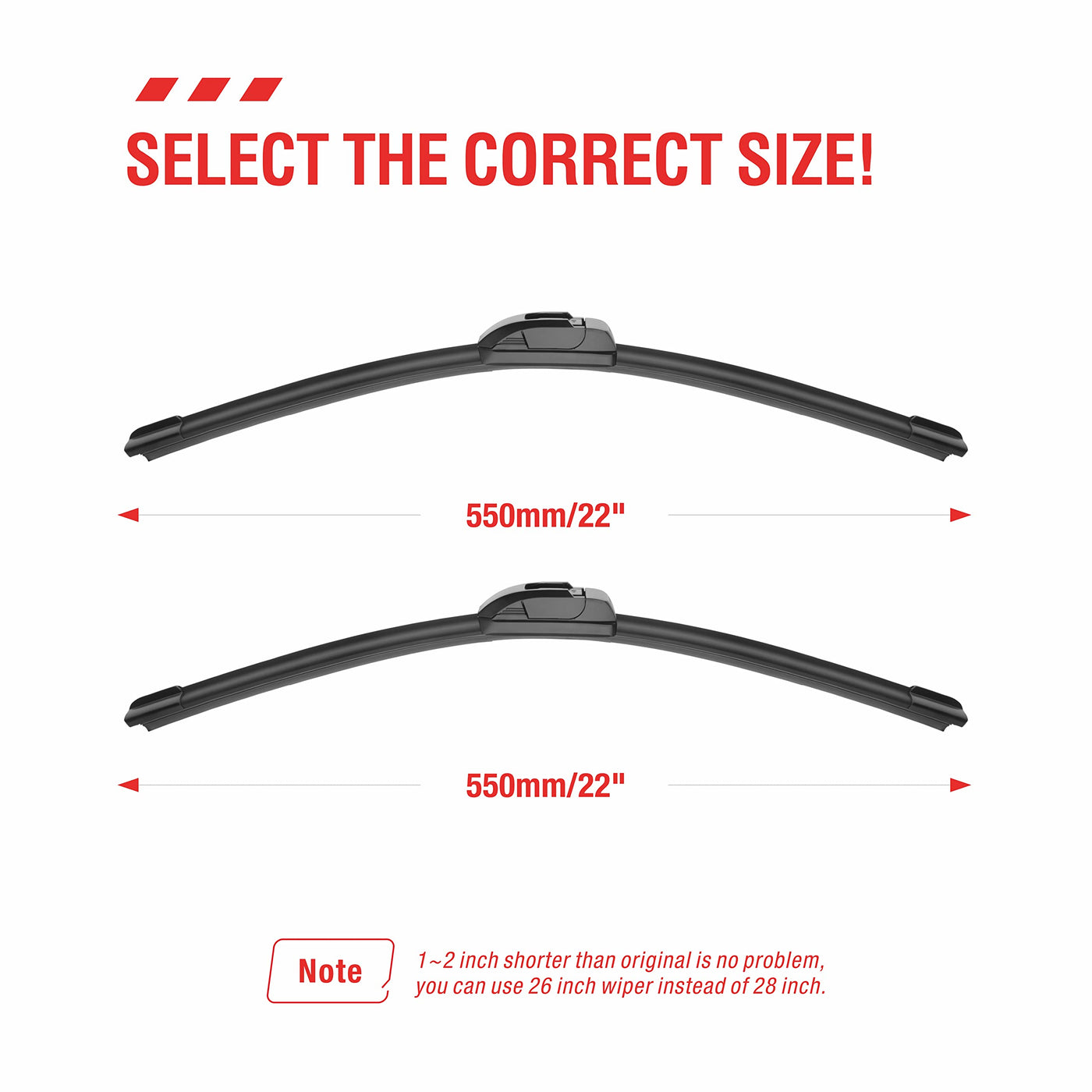 Oem Quality Performance Premium 22 Wiper Blades 2 Pack,All-Season Auto Replacement Windshield Wiper Blades,Fit Chevrolet Impala